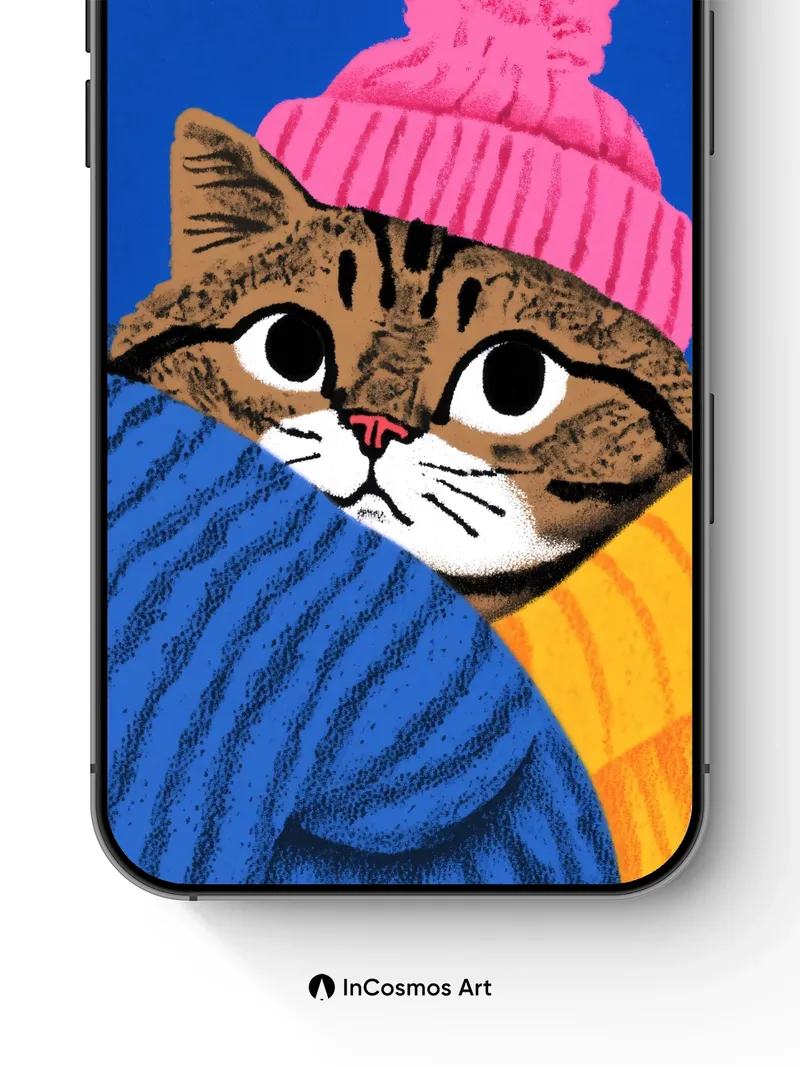 Whimsical Winter Cat Wallpaper with Knit Warmth