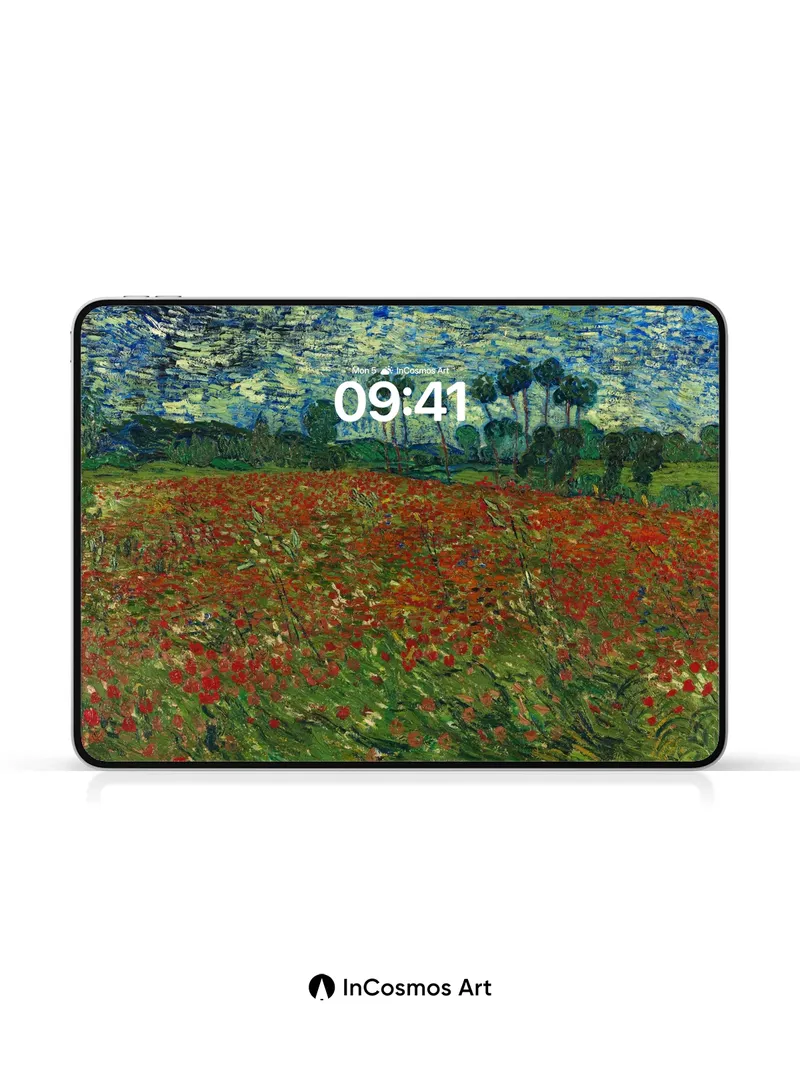 Whirlwind Poppy Field Wallpaper with Van Gogh Swirls