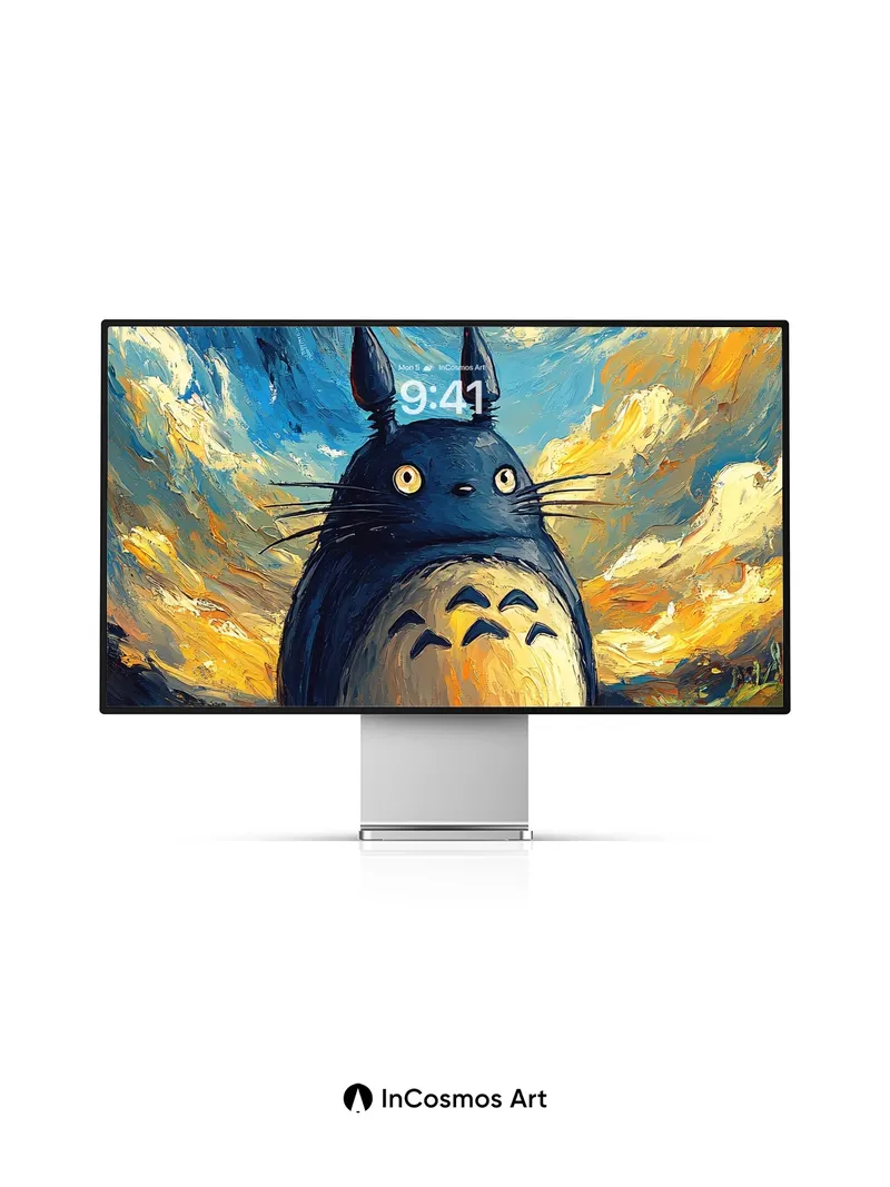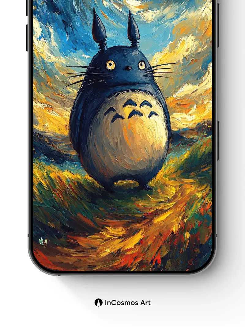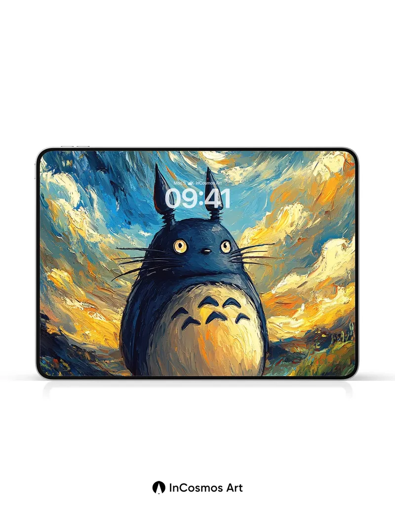 Whirlwind Totoro Wallpaper with Starlit Swirls