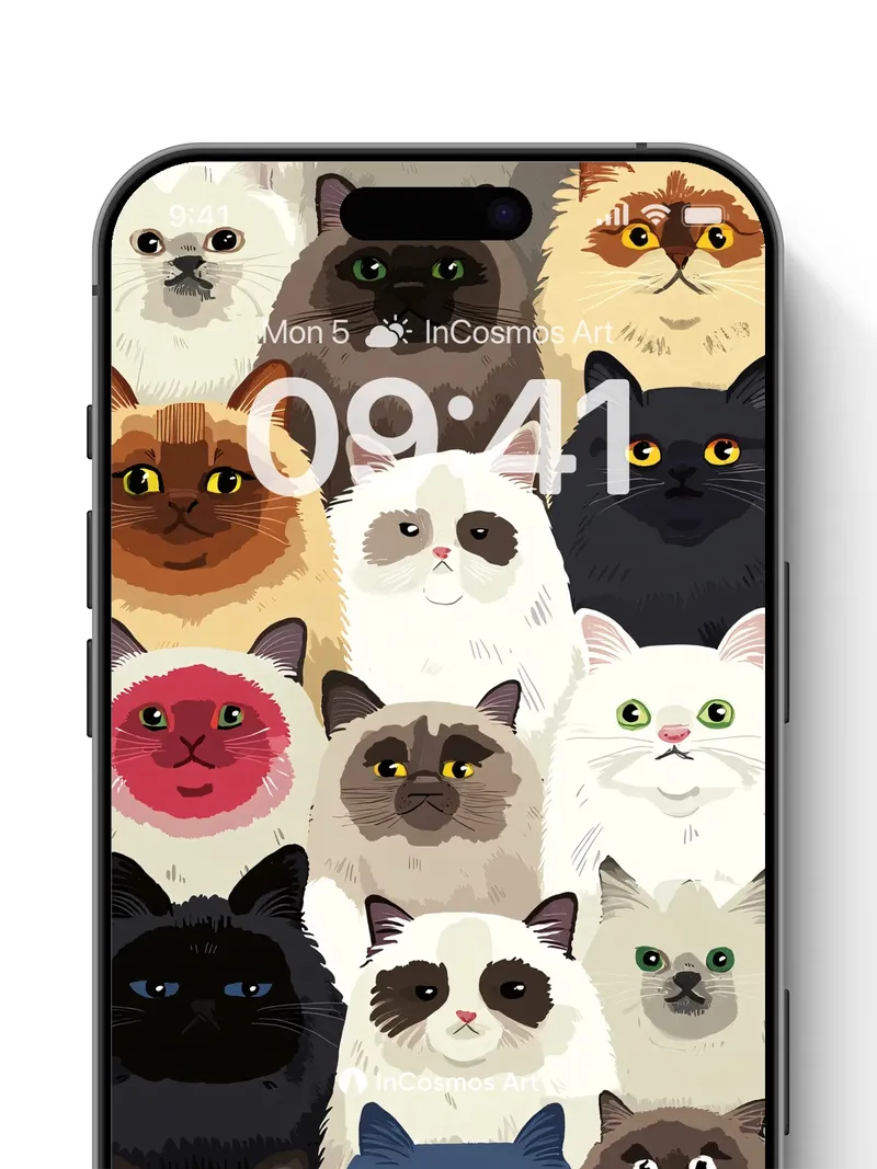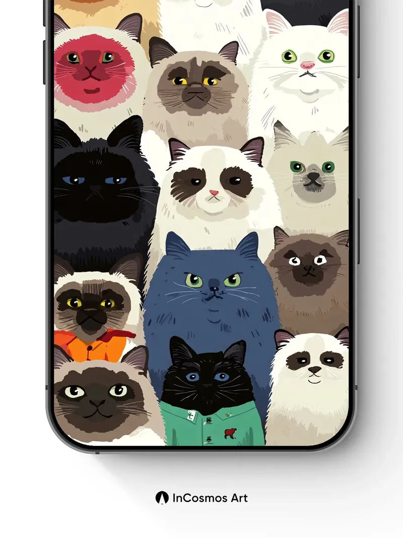 Whiskered Whimsy Wallpaper with Feline Faces