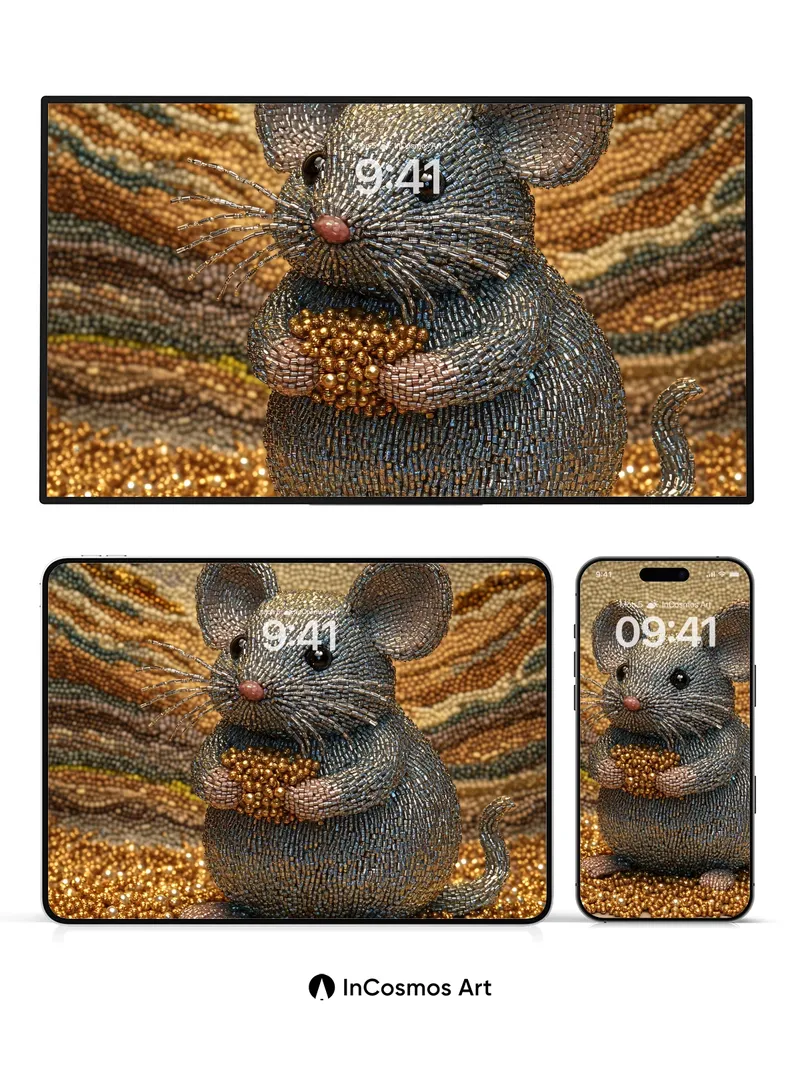 Whispering Beadwork Wallpaper with Murmuring Mice