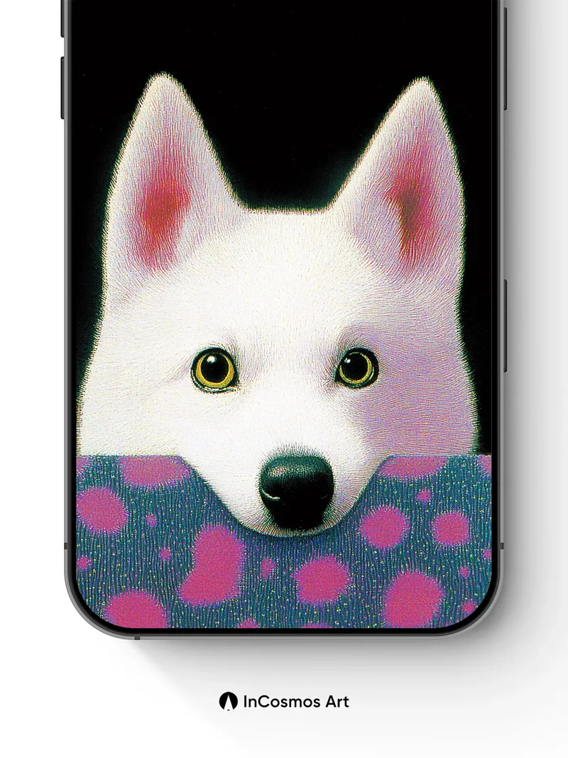Whispering Canine Wallpaper with Polka-Dot Veil