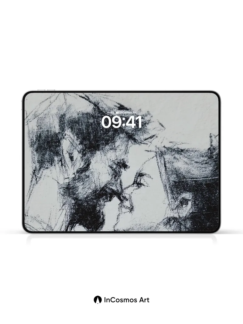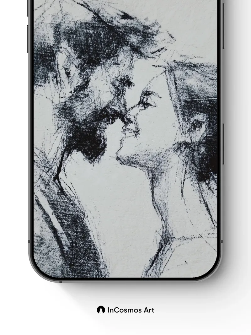 Whispering Charcoal Wallpaper with Shadowed Embrace