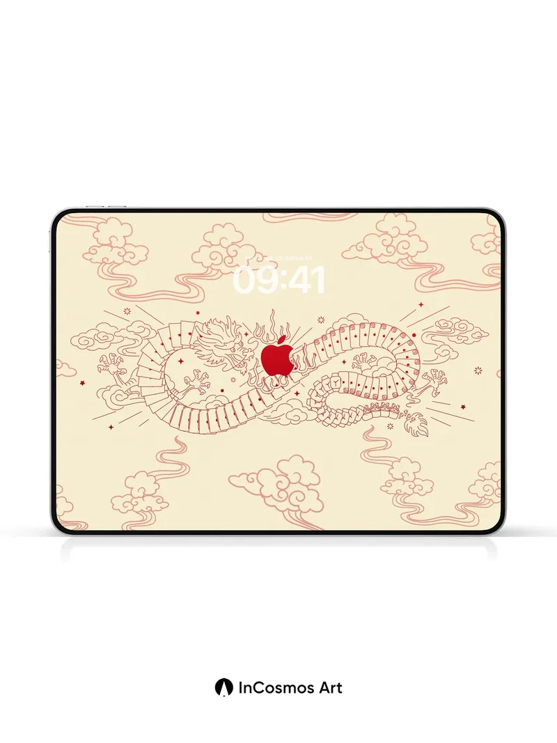 Debug page_description: Did you know ancient Chinese scrolls often depicted dragons as celestial guardians of balance, their coils forming the shape of infinity? Here, a red apple—symbol of forbidden knowledge—nestles in the dragon’s spiral, its glossy surface catching light like a secret pulse. The line work breathes with rhythmic precision, each cloud curling like a sigh from a distant mountain temple. Share this with your best friend. Send this to your love and swap a matching set. What if every bite you took rewrote the sky?