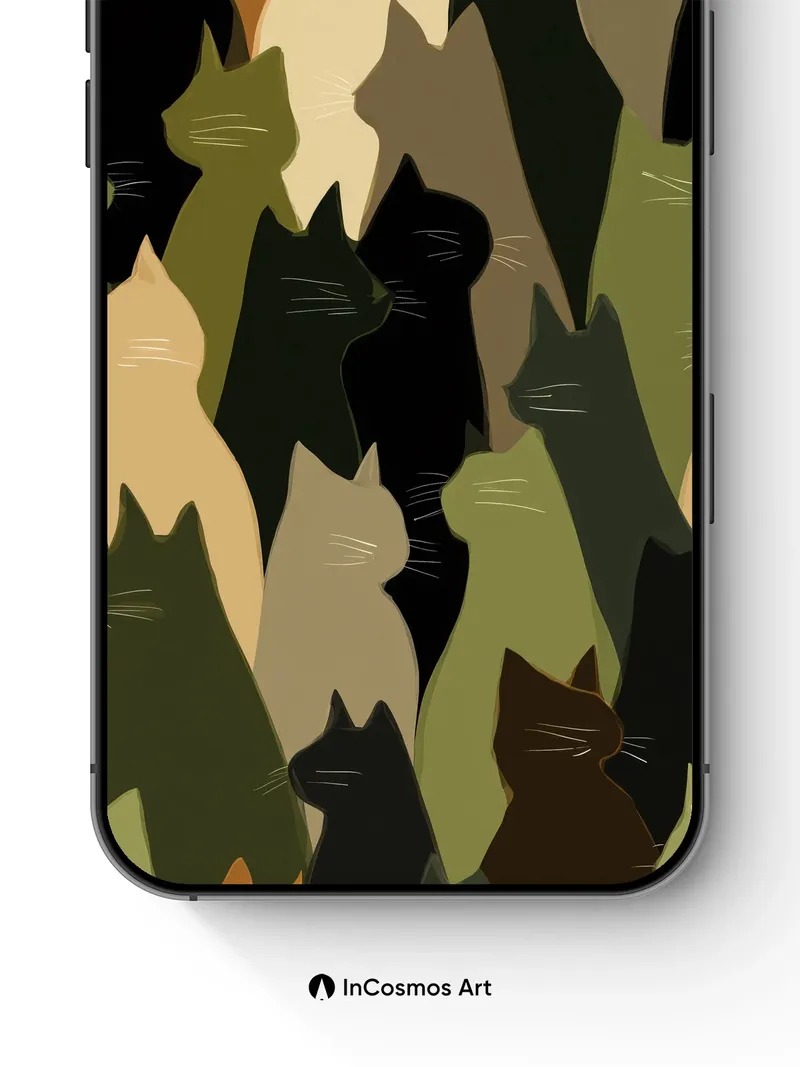 Whispering Feline Wallpaper with Earth-Toned Silhouettes