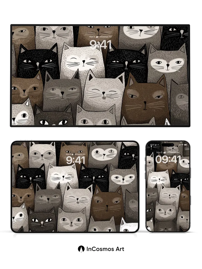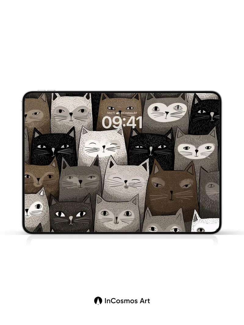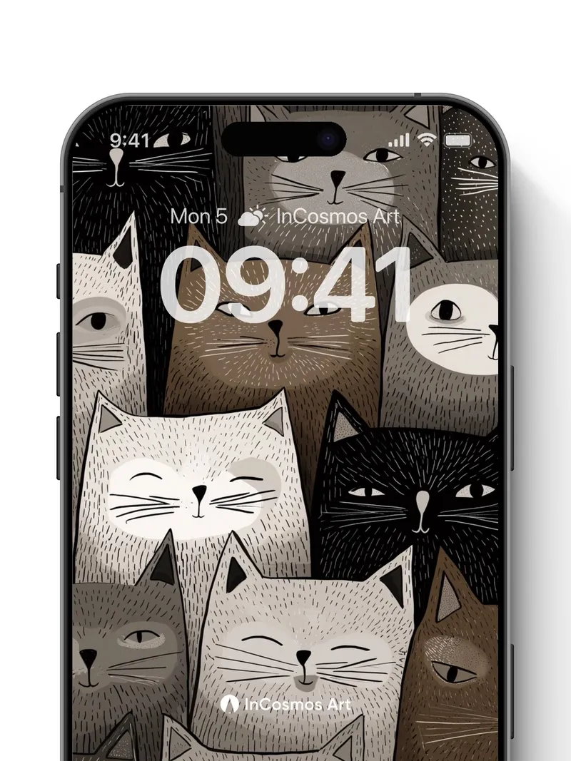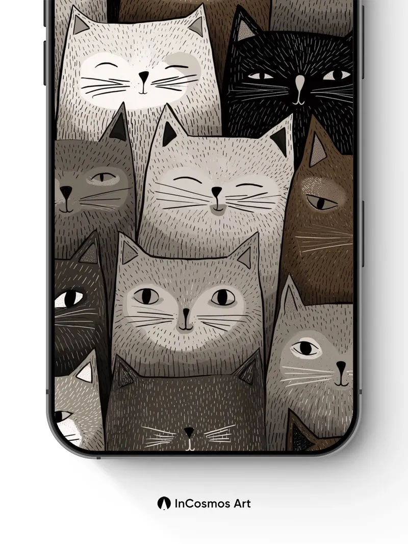 Whispering Feline Wallpaper with Ink-Stroke Depth