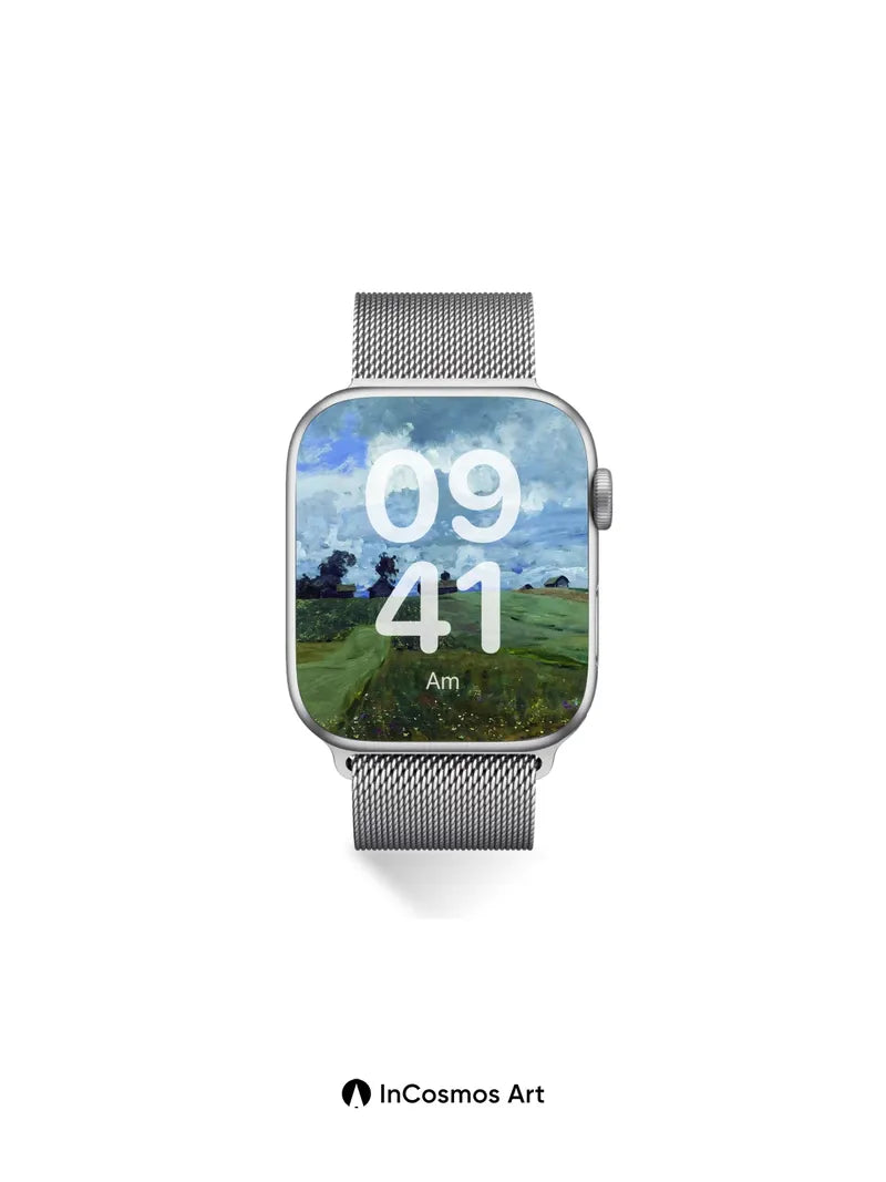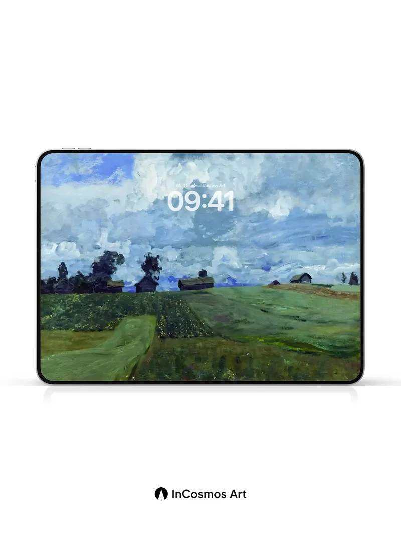 Whispering Fields Wallpaper with Cloud-Brushed Sky