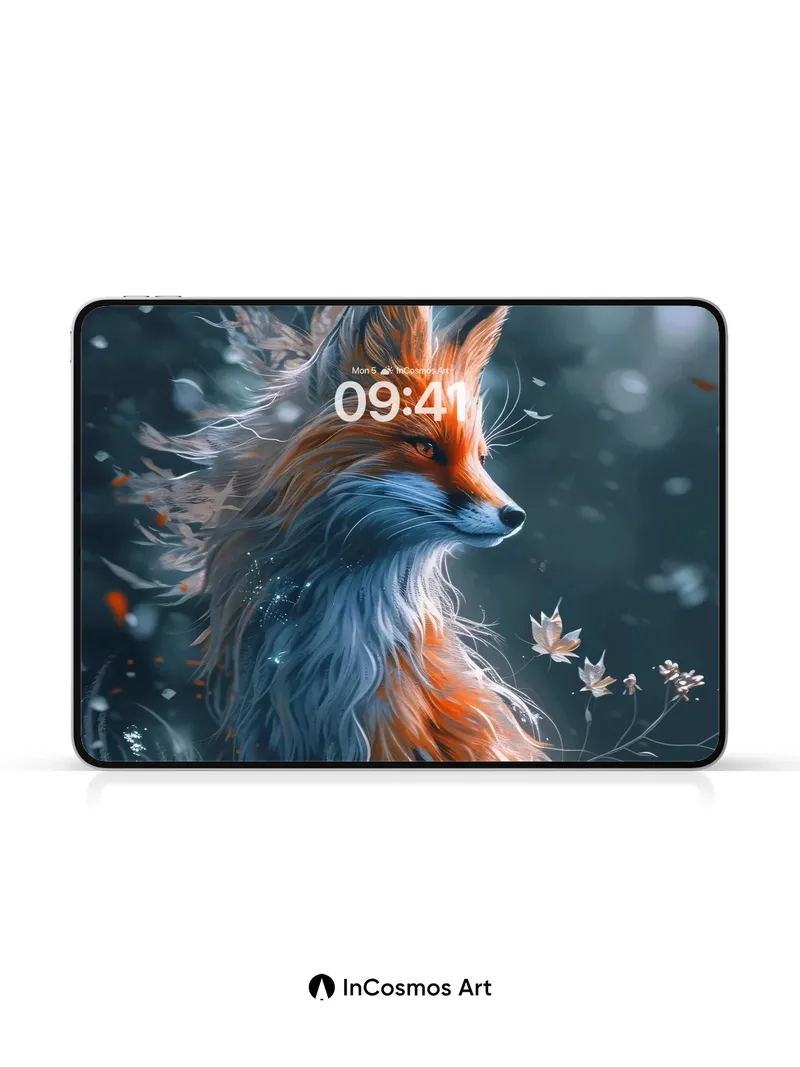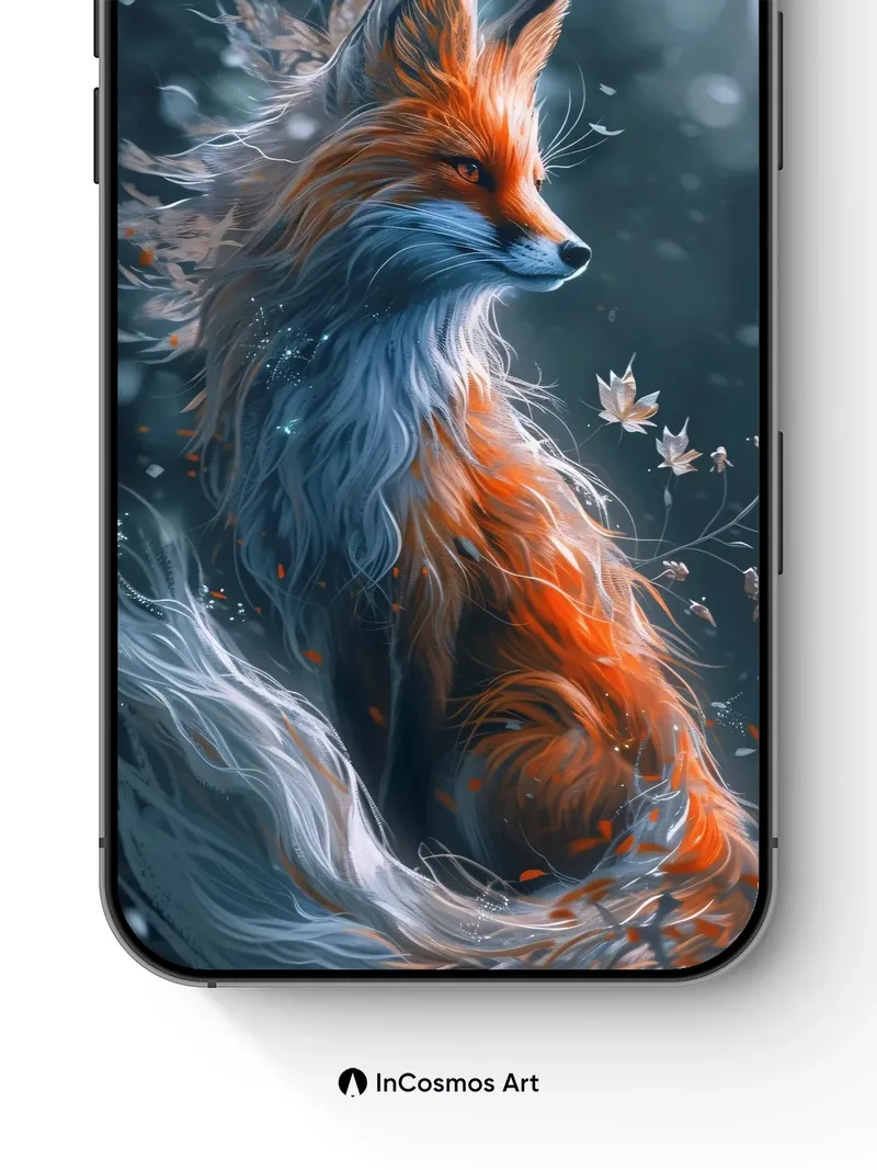 Whispering Fox Wallpaper with Floating Leaves