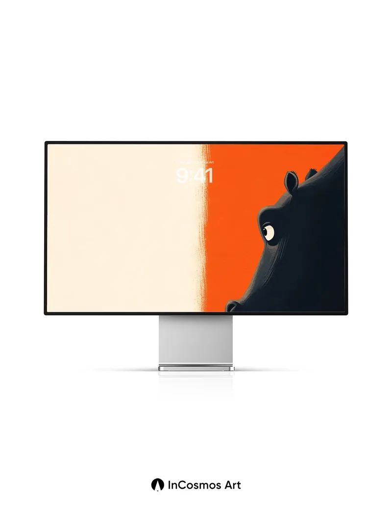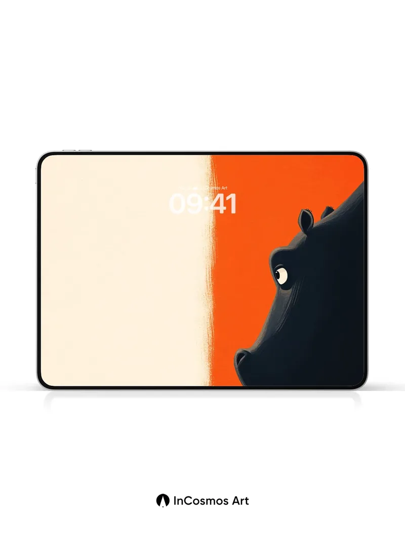 Debug product.metafields.custom.desc: Did you know that hippos can hold their breath underwater for up to five minutes? In this moment, a child stands at the edge of an infinite beige void, facing a colossal hippo whose shadow stretches like a silent promise across the burnt-orange wall. The contrast between the vastness and the small figure creates a tension that hums just below the surface—like a story waiting to be told.
