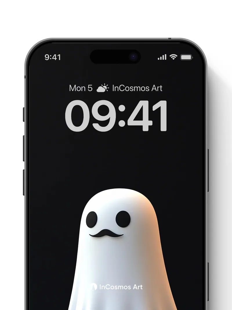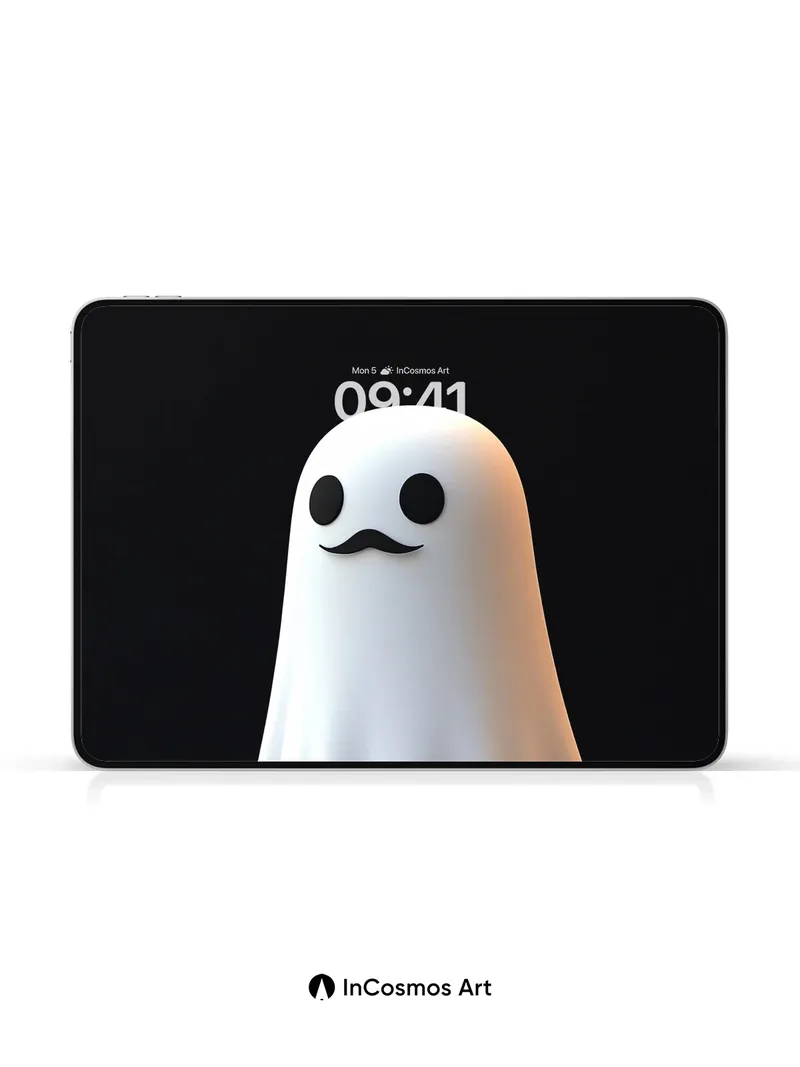 Whispering Ghost Wallpaper with Mustache Charm