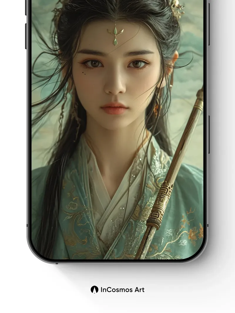 Whispering Jade Wallpaper with Ancient Threads