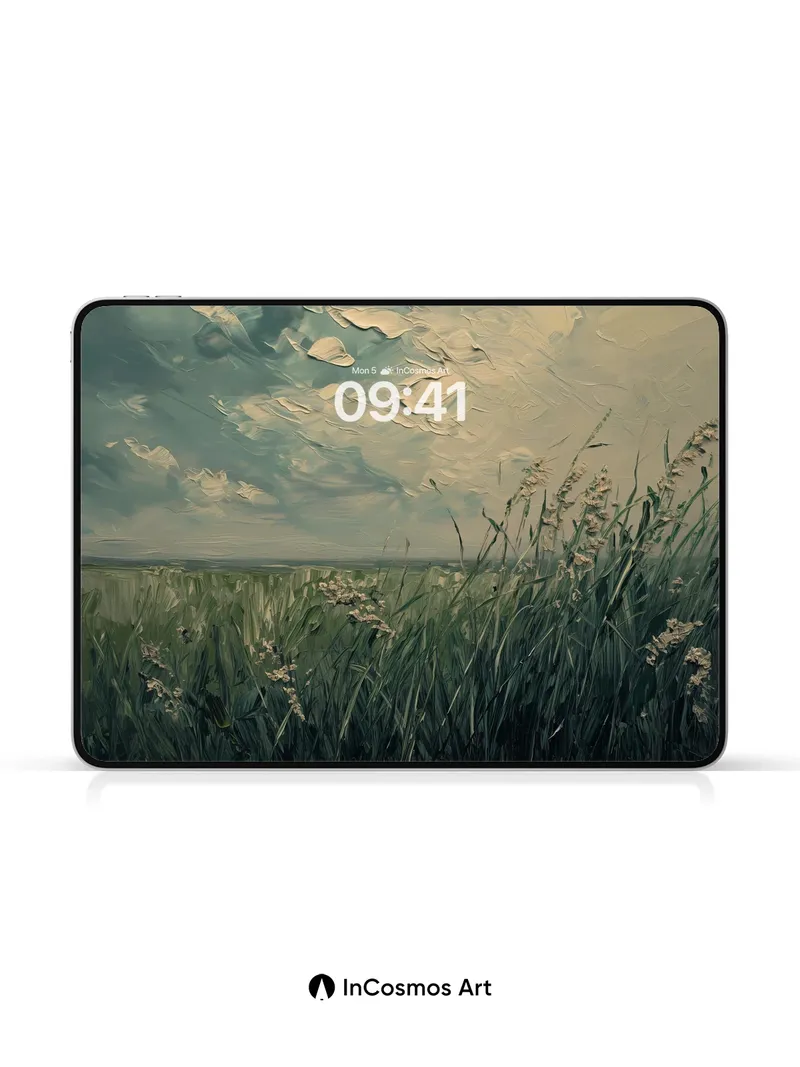 Whispering Meadow Wallpaper with Cloud-Brushed Sky