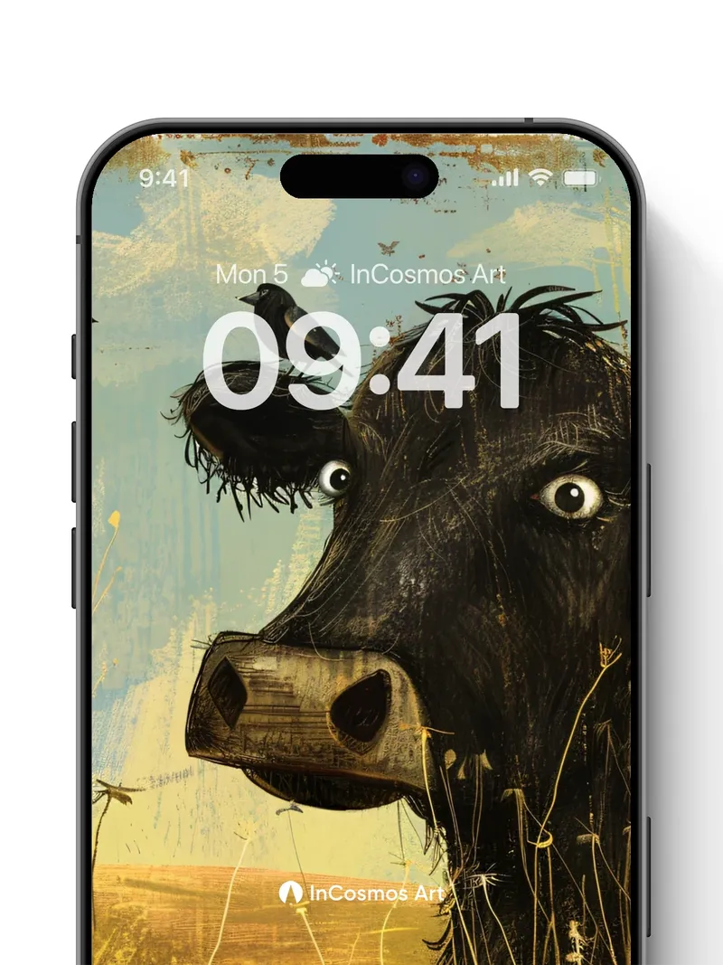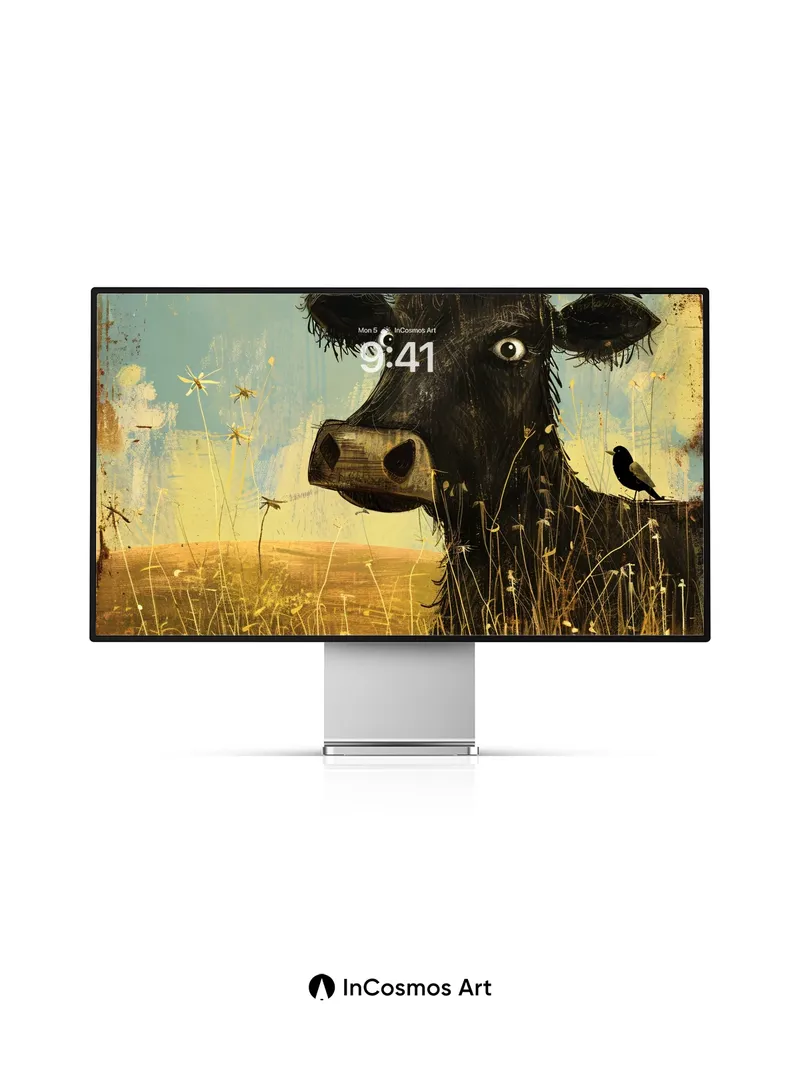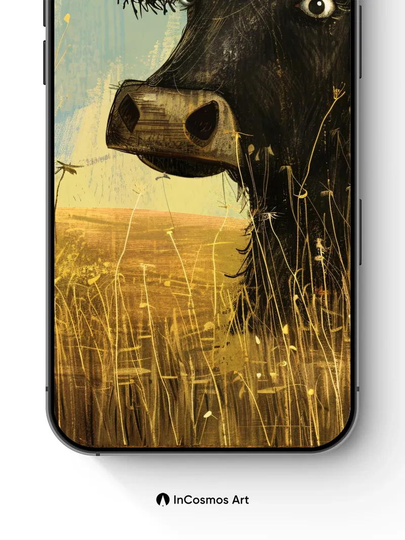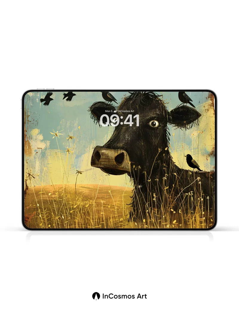 Whispering Meadow Wallpaper with Crow-Crowned Cow