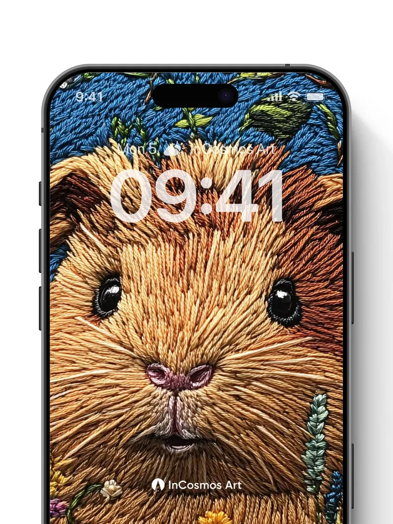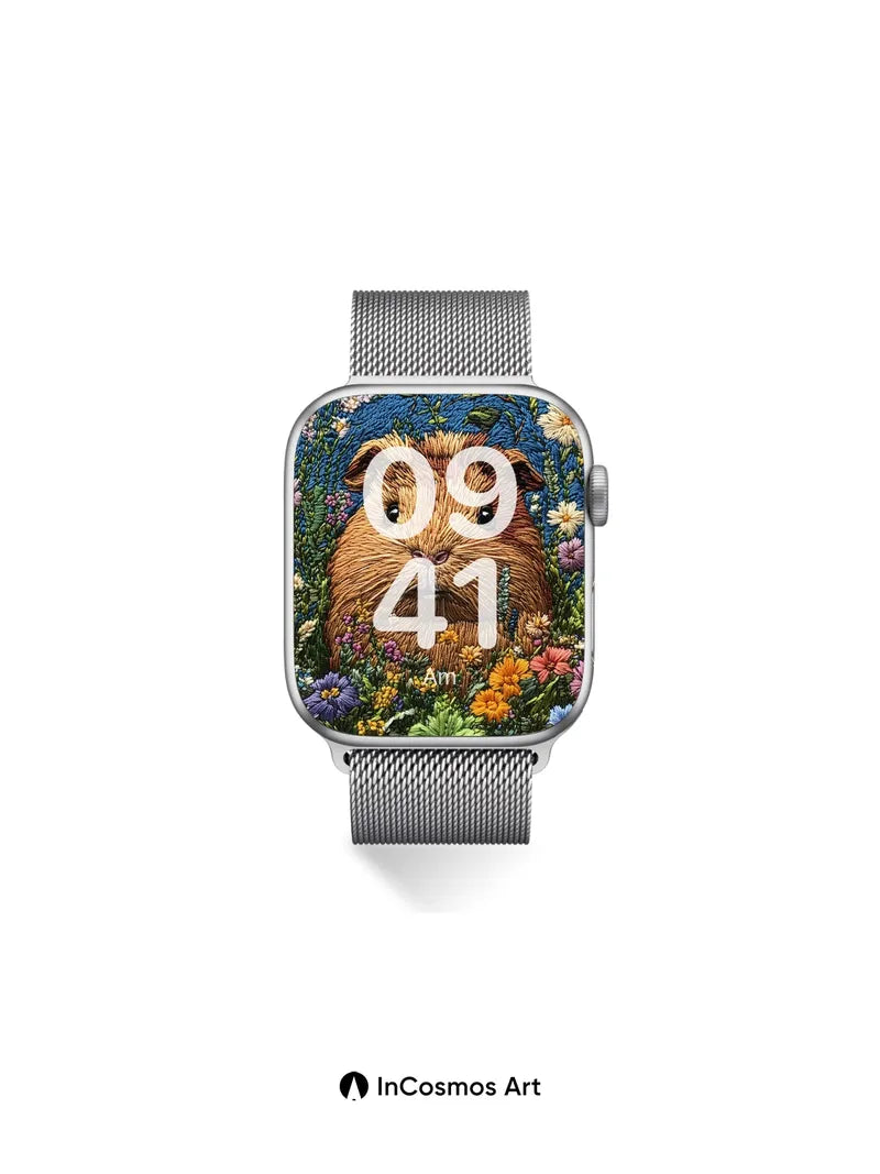 Debug product.metafields.custom.desc: Did you know that guinea pigs have been domesticated for over 7,000 years, their soft fur once used in ancient Andean textiles? Here, a golden-brown guinea pig peers through a tapestry of wildflowers stitched with such precision that each petal seems to breathe under the weight of sunlight. The threads shimmer like living silk, weaving shadows and light into a garden that feels both timeless and intimate.