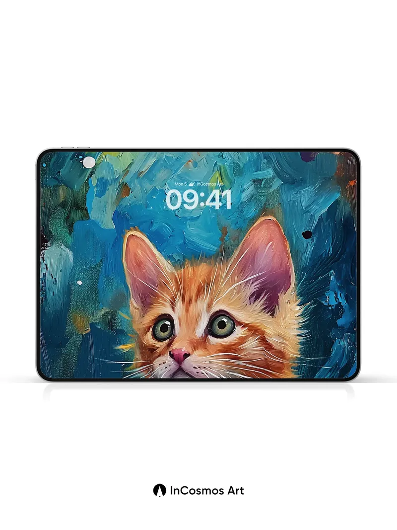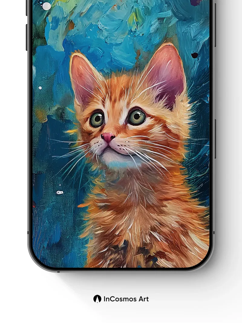 Whispering Orange Kitten Wallpaper with Cosmic Brushstrokes