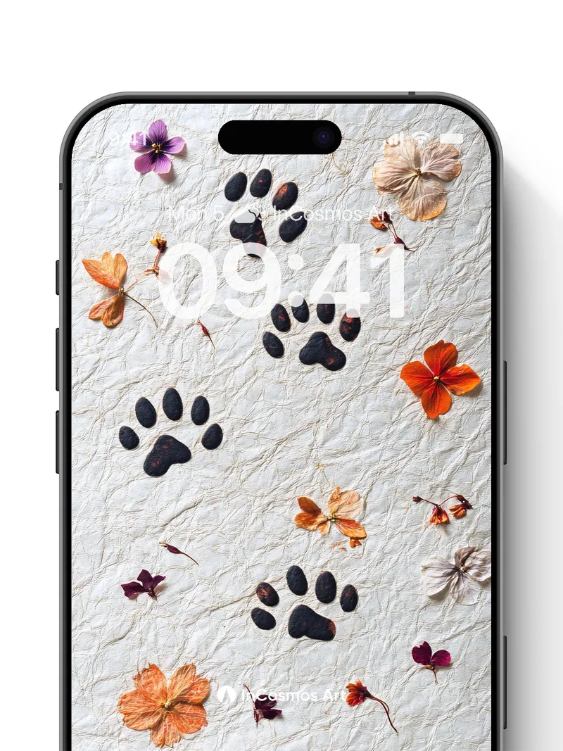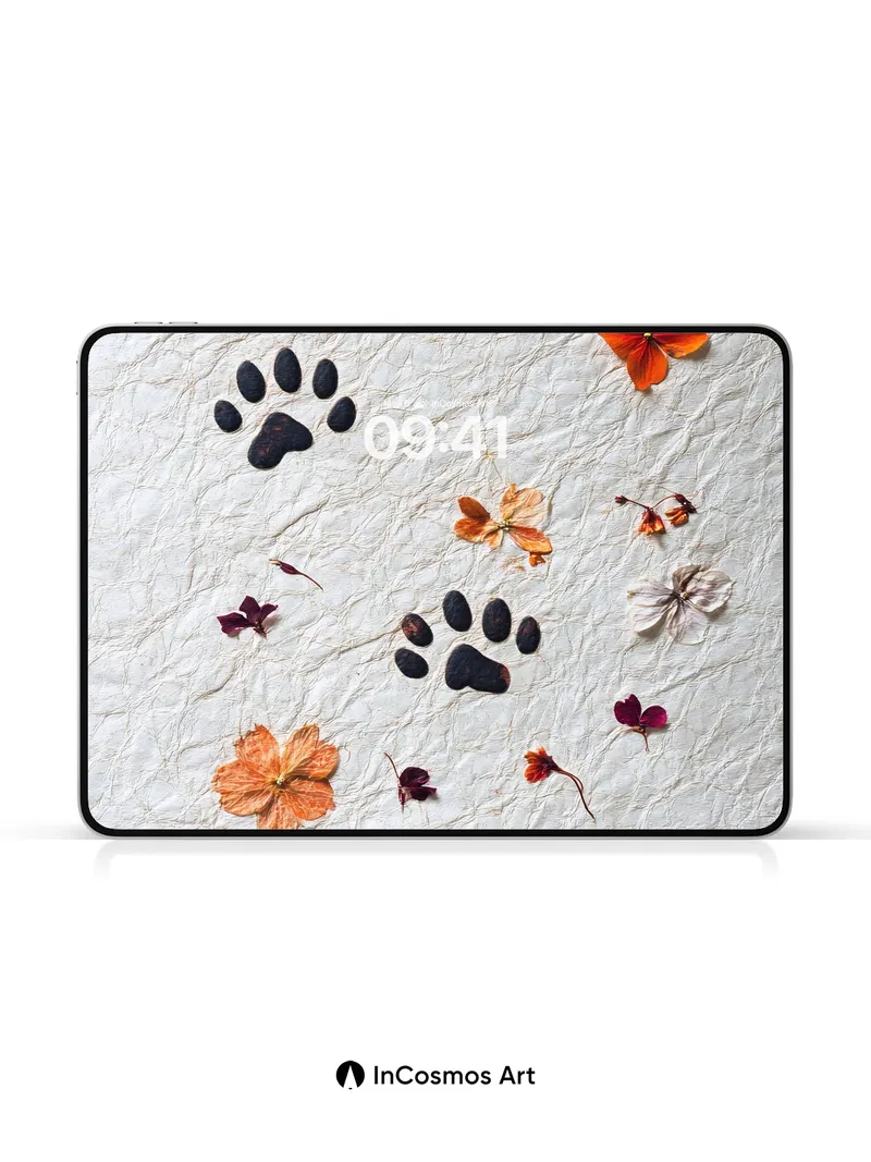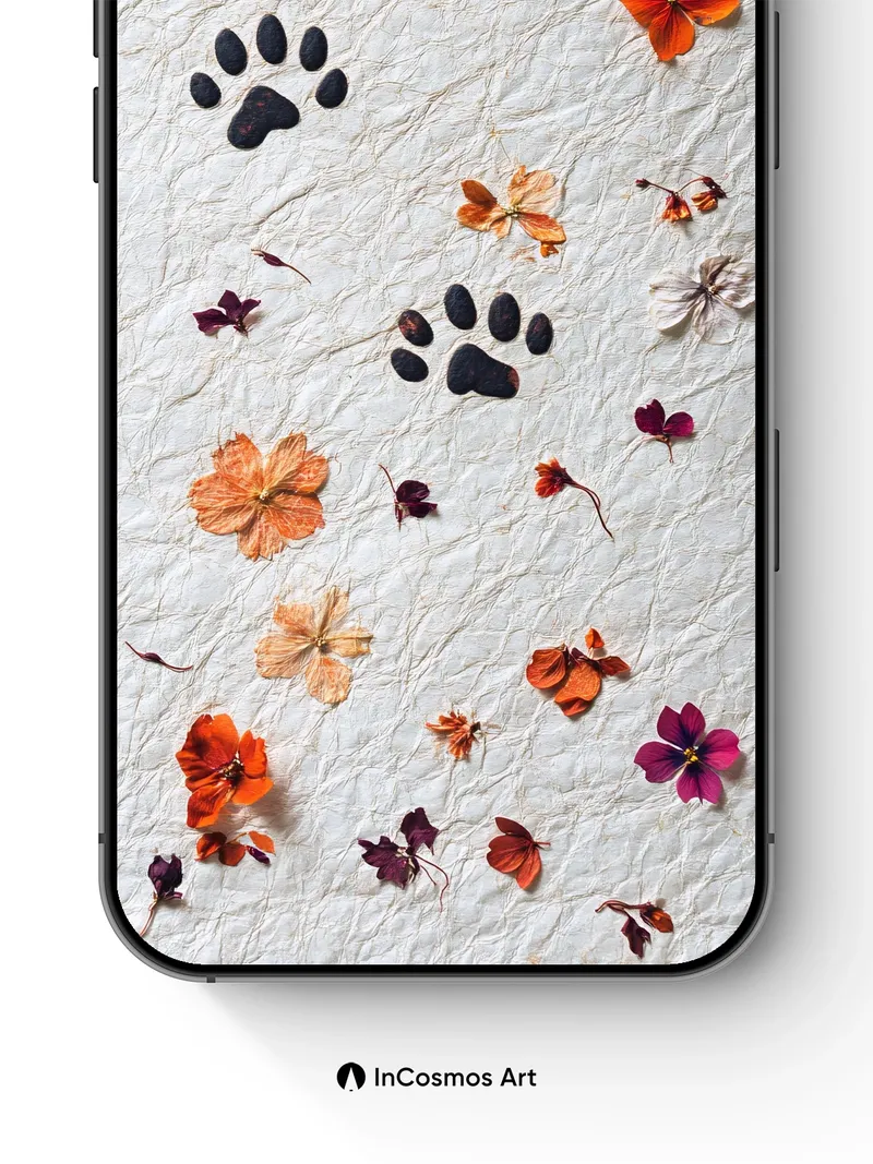Debug page_description: Did you know dried flowers retain their scent for decades when preserved in wax? Here, they lie like forgotten secrets on crinkled parchment, each petal a memory pressed between time and touch. Dark paw prints trace an invisible path through the bloom-strewn silence, as if a creature of myth once walked this paper world, leaving behind not footprints, but echoes. Share this with your best friend. Send this to your love and swap a matching set. What if every step you took left behind a flower instead of a footprint?