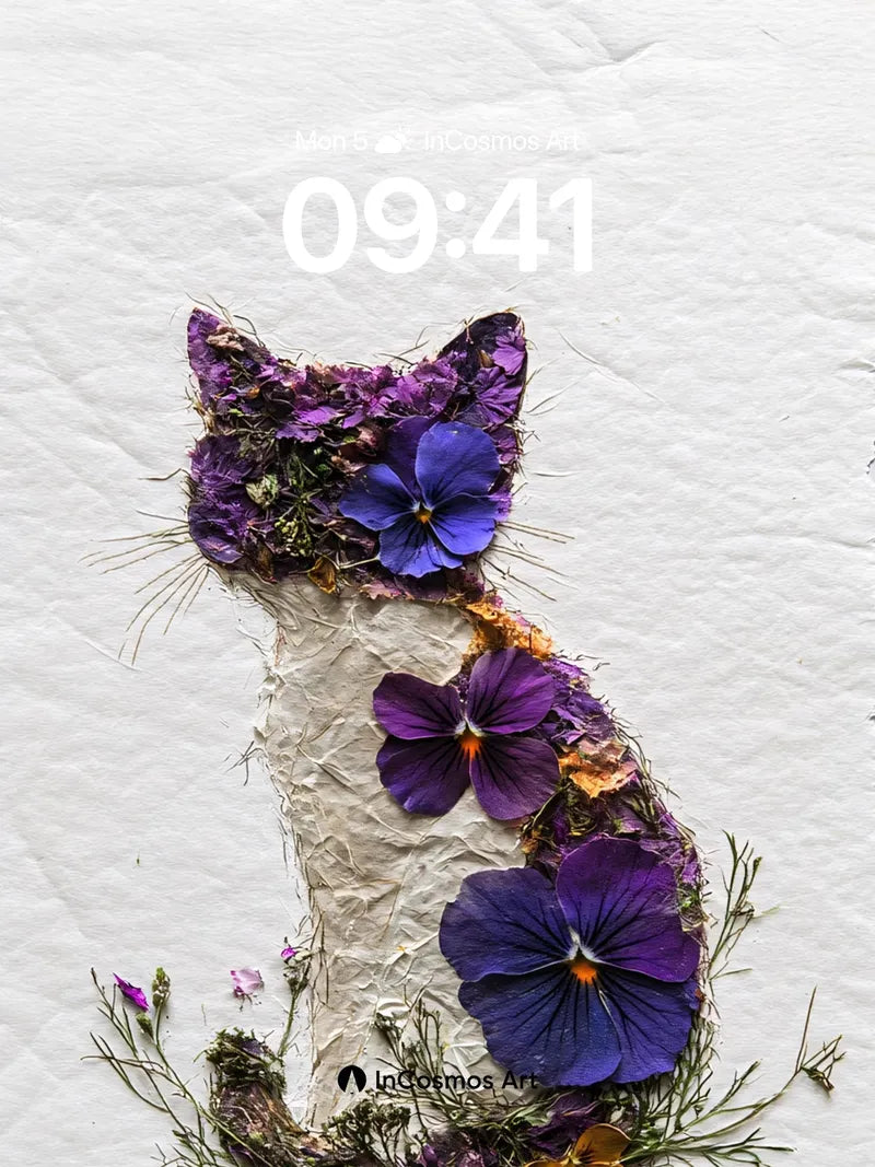 Whispering Petal Wallpaper with Feline Silhouette