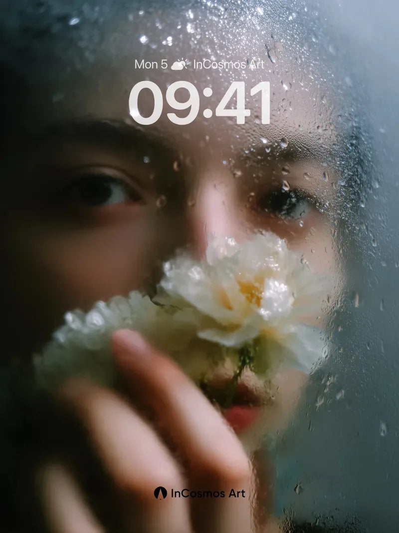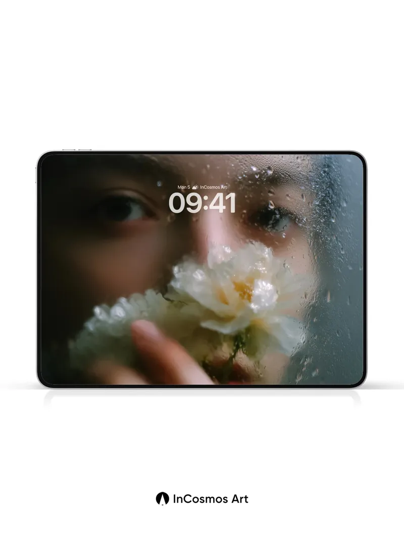 Whispering Petal Wallpaper with Rain-Soaked Glass