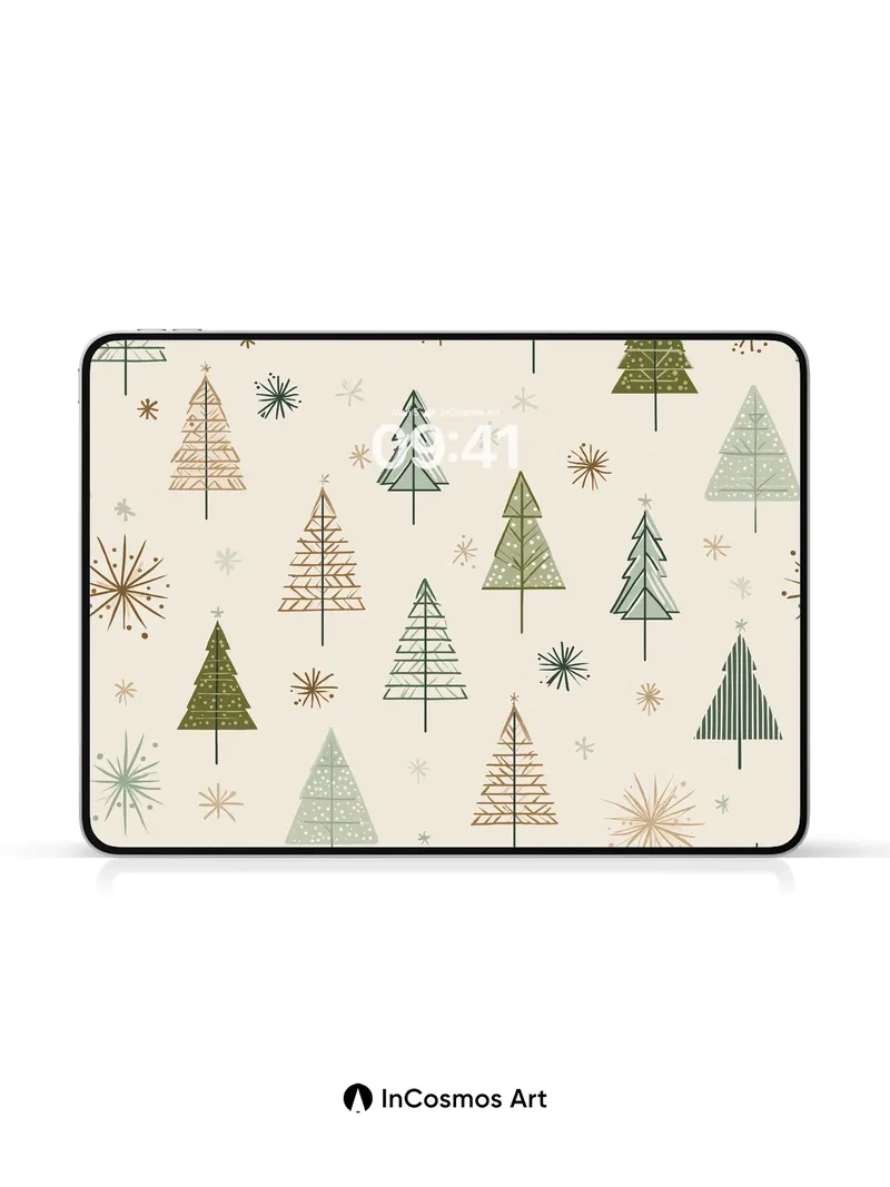 Debug page_description: Did you know mid-century designers often used geometric trees to symbolize nature’s order? Here, stylized evergreens in mossy greens and warm ochres rise like quiet sentinels against a soft cream backdrop, each adorned with delicate starbursts that shimmer like frost on dawn. The pattern breathes rhythm—sparse yet full, calm yet alive—with lines that feel hand-drawn, not machine-made. Share this with your best friend. Send this to your love and swap a matching set. What if every tree held a secret tune waiting to be heard?