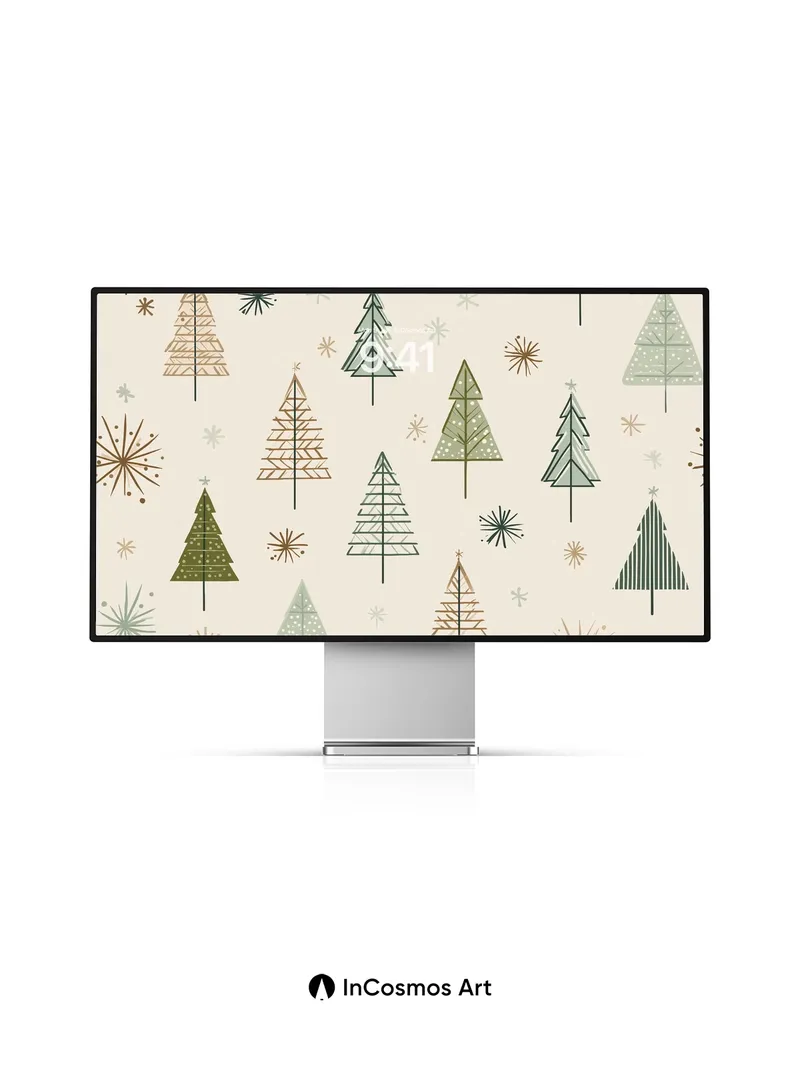 Debug og_description: Did you know mid-century designers often used geometric trees to symbolize nature’s order? Here, stylized evergreens in mossy greens and warm ochres rise like quiet sentinels against a soft cream backdrop, each adorned with delicate starbursts that shimmer like frost on dawn. The pattern breathes rhythm—sparse yet full, calm yet alive—with lines that feel hand-drawn, not machine-made.