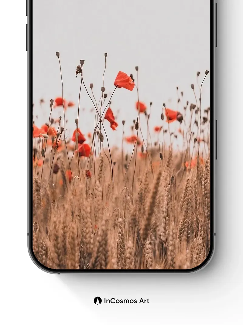 Whispering Poppy Field Wallpaper with Golden Wheat