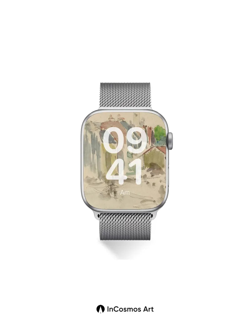 Debug product.metafields.custom.desc: Did you know watercolor artists often use salt to create unpredictable textures that mimic frost or ancient stone? Here, color breathes through soft washes of ochre and slate, where rooftops lean into each other like old friends sharing secrets. The sky holds its breath, painted in pale haze, while a distant spire pierces the quiet—just enough to remind you of time’s slow drift.