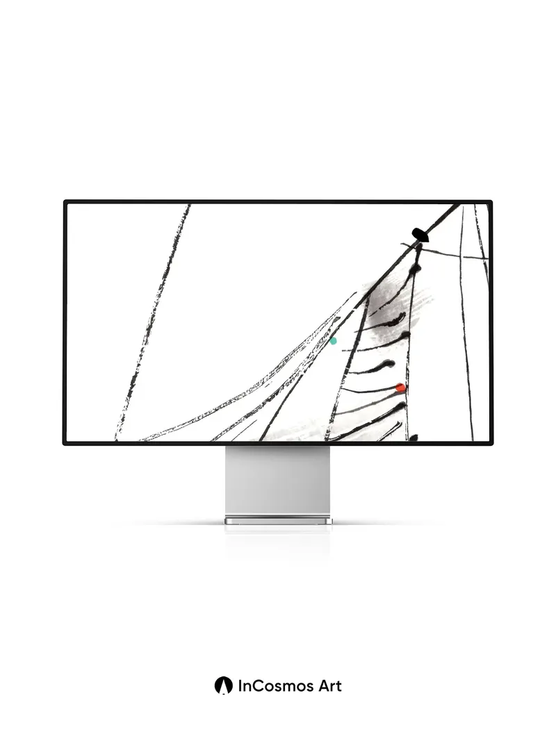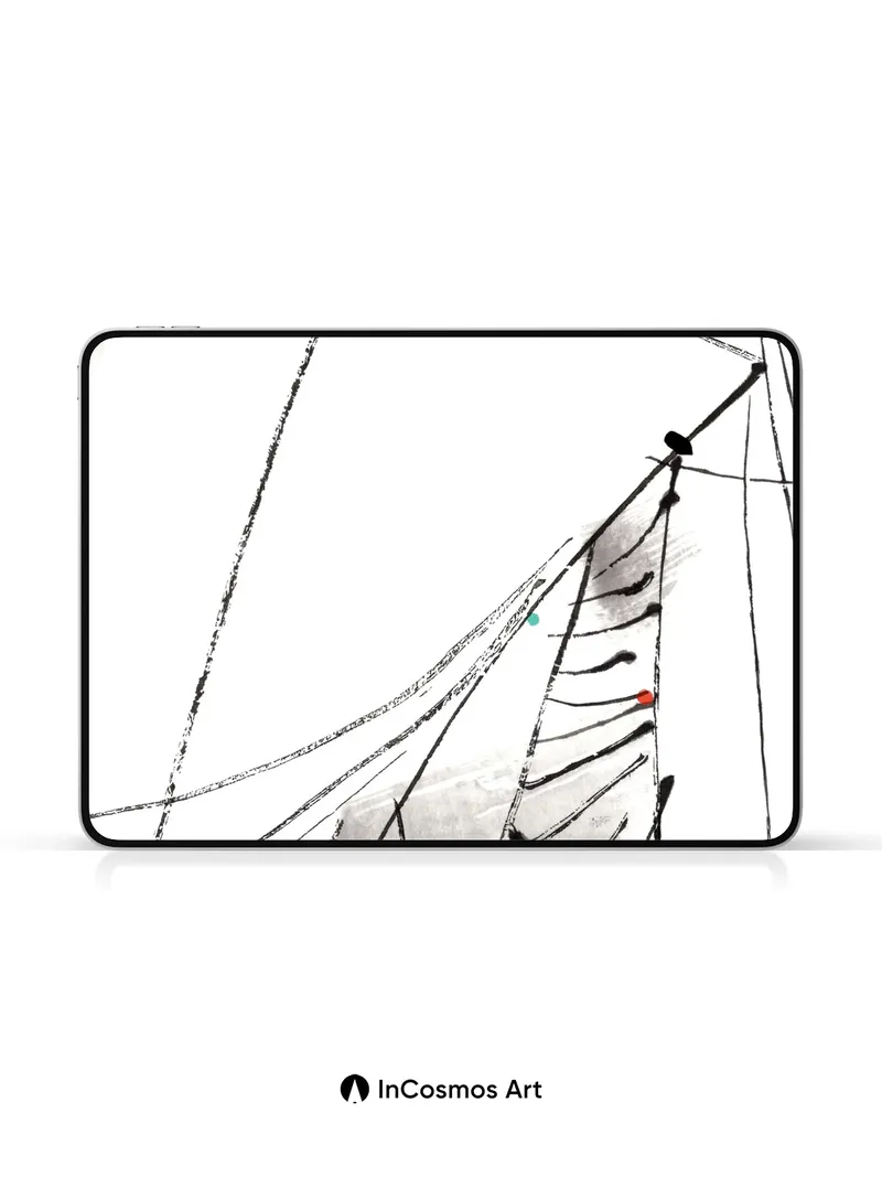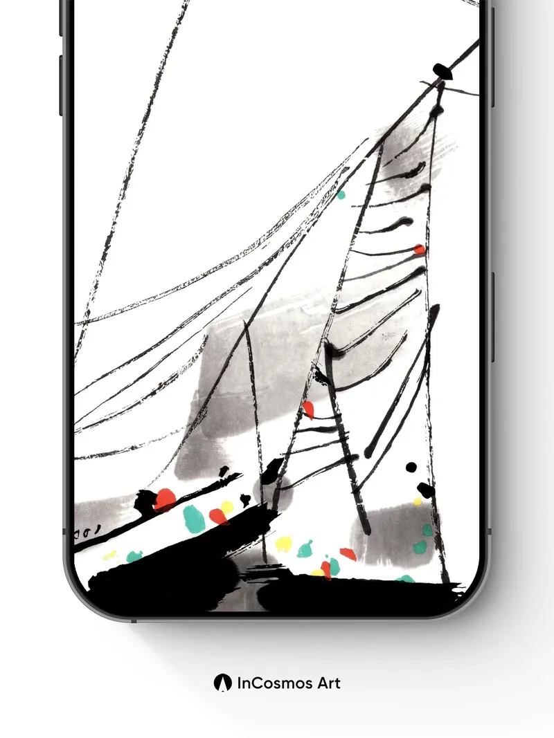 Debug product.metafields.custom.desc: Did you know that ancient sailors once believed sails carried the breath of the wind? Here, ink lines carve through blankness like gusts across a calm sea, while scattered color dots—like distant lanterns—pierce the monochrome silence. You feel the tension in every taut rope, the weightlessness of unfurled canvas, as if standing at the prow of a vessel drifting between memory and dream.