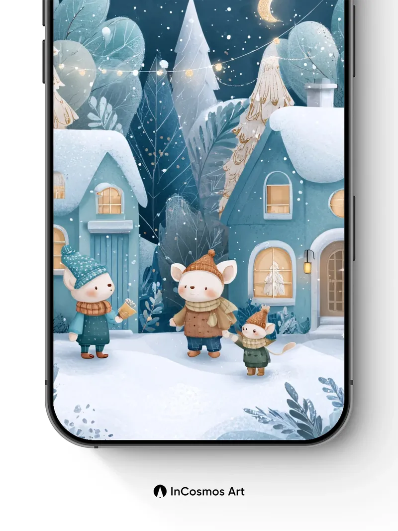 Did you know snowflakes form unique crystalline patterns in just seconds, each one a fleeting masterpiece? In this winter wonderland, soft luminescence spills from windows like warm honey, while tiny creatures gather beneath glowing string lights that drape across the sky like celestial threads. The air hums with quiet magic—every pinecone and frost-kissed branch holds a secret.