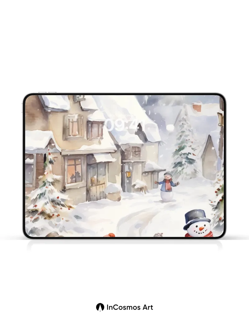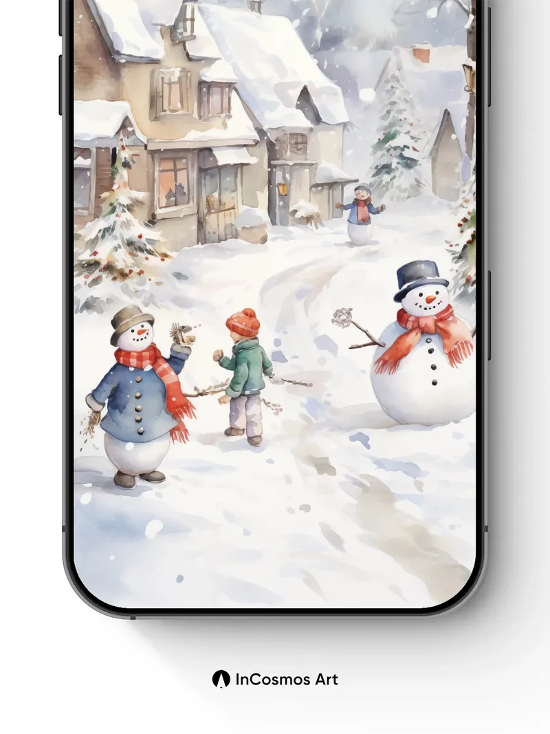 Whispering Snowfall Wallpaper with Playful Snowmen