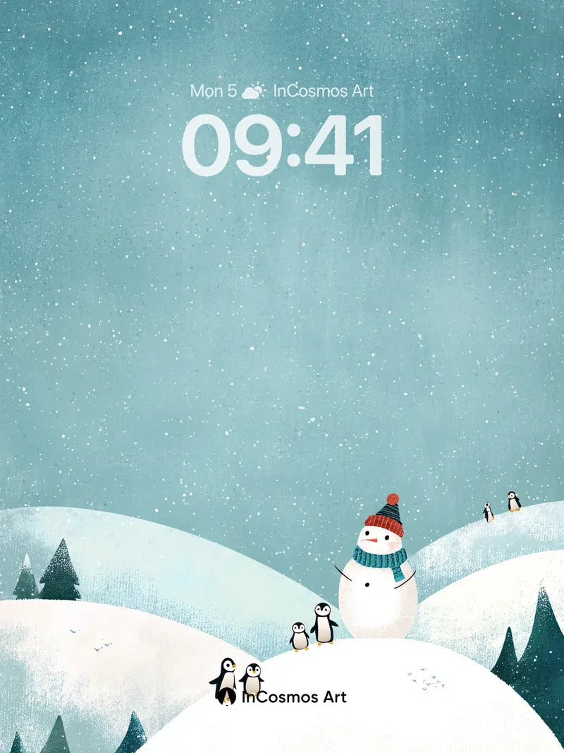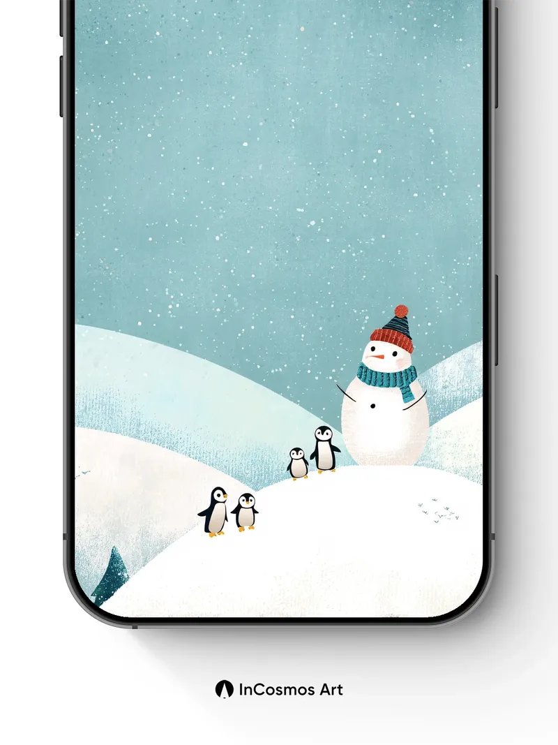 Whispering Snowscape Wallpaper with Penguin Family