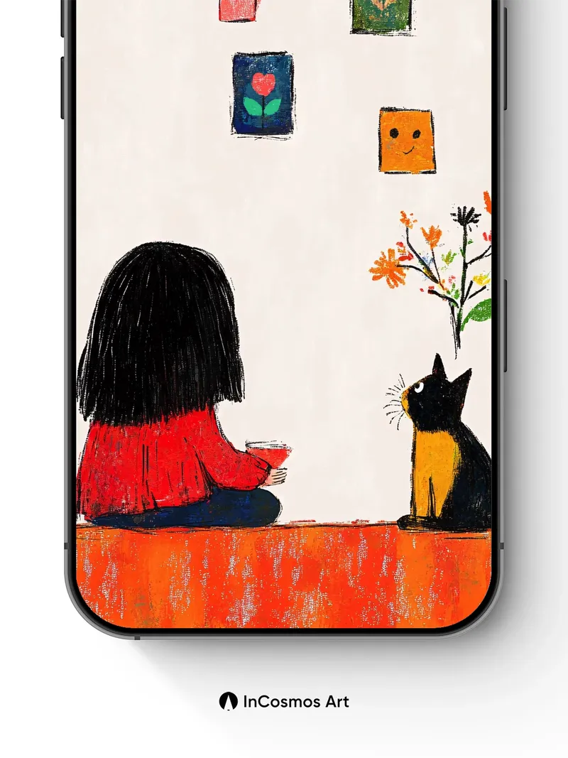Whispering Stillness Wallpaper with Feline Gaze