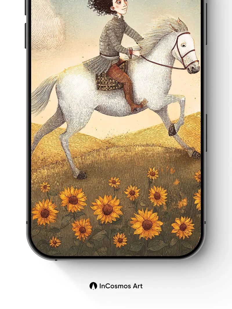 Whispering Sunflower Fields Wallpaper with Curly Rider