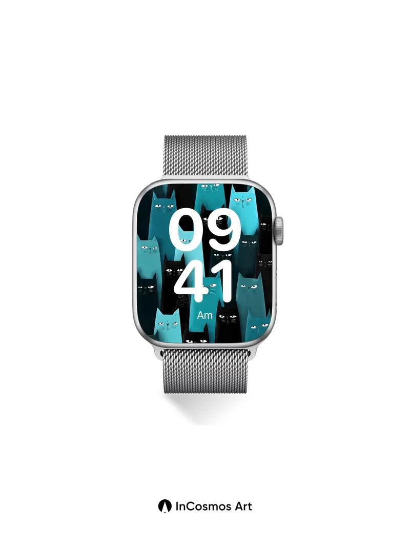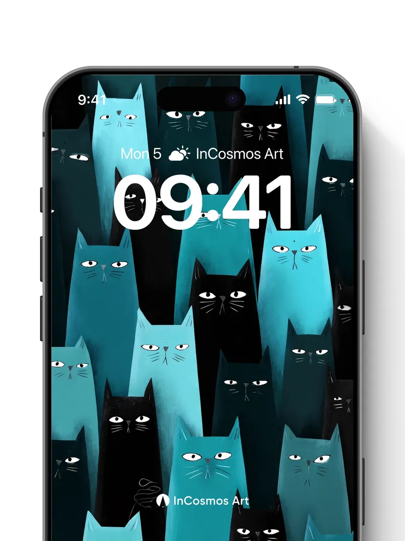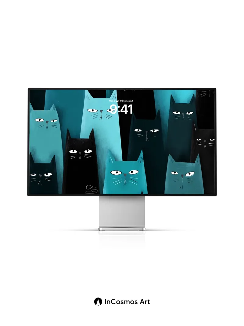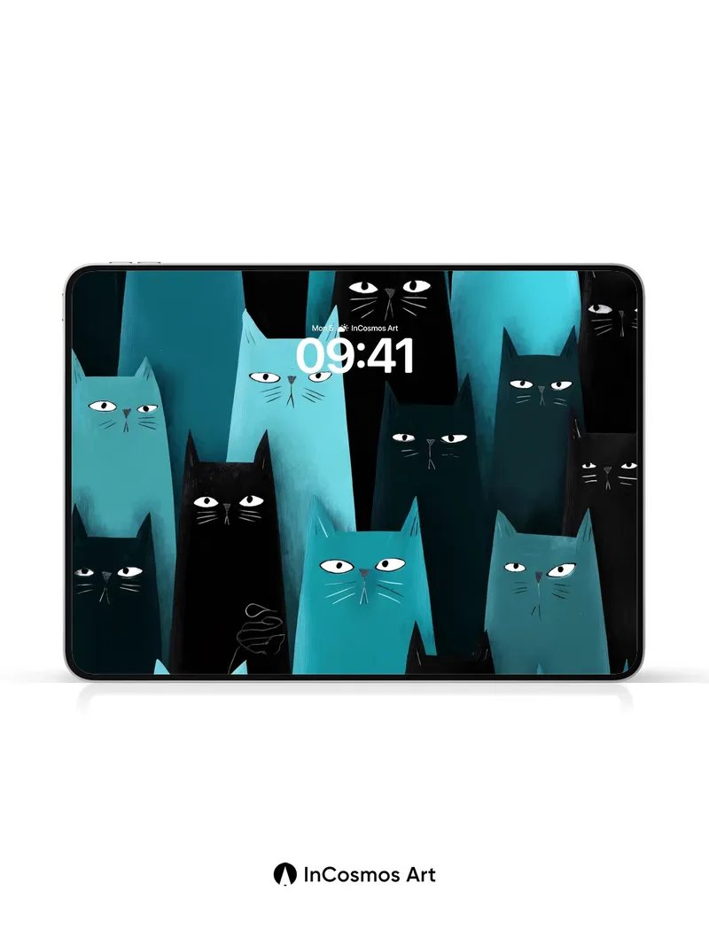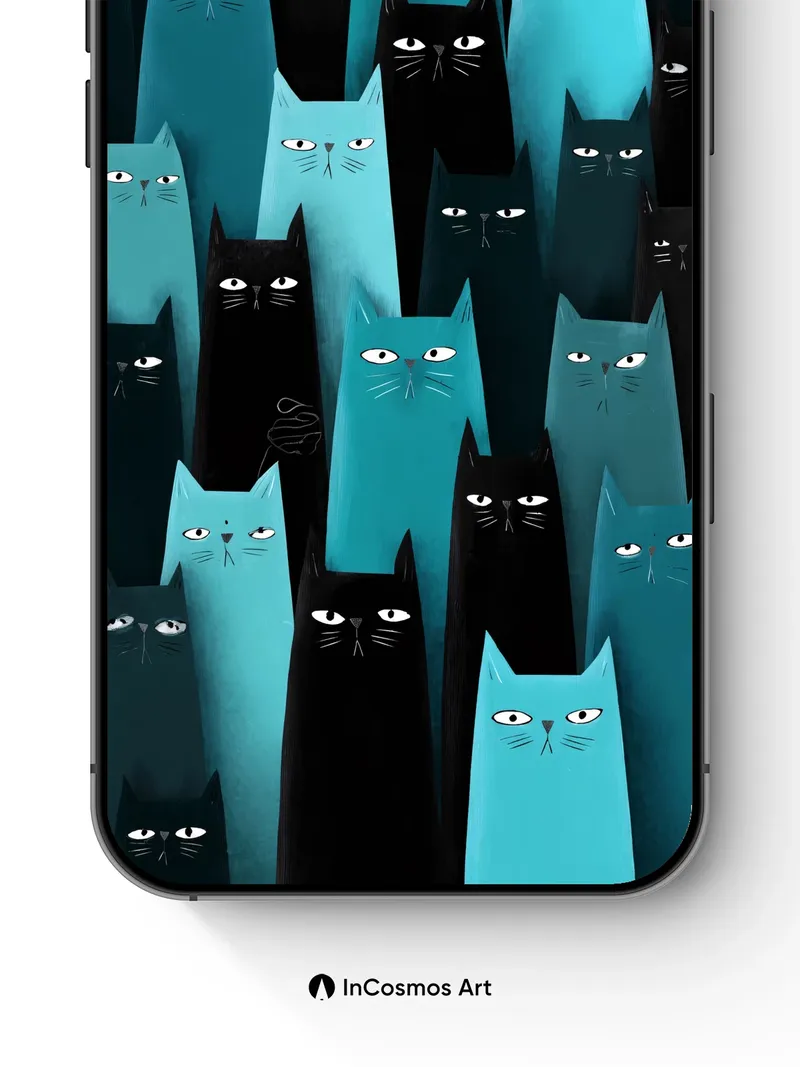 Whispering Teal Cats Wallpaper with Shadowed Gaze