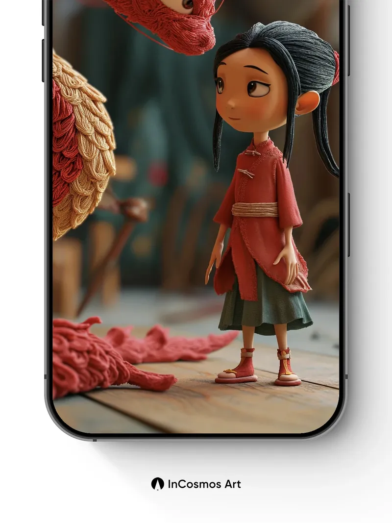 Debug product.metafields.custom.desc: Did you know ancient Chinese artisans once wove silk into dragon motifs using only hand-spun threads? Here, the crimson scales breathe life as if stitched from dreams, each ridge a story spun in fire and fiber. The girl stands still, her gaze meeting the creature’s amber eye—neither fear nor awe, but quiet understanding, like two worlds woven together by unseen hands.
