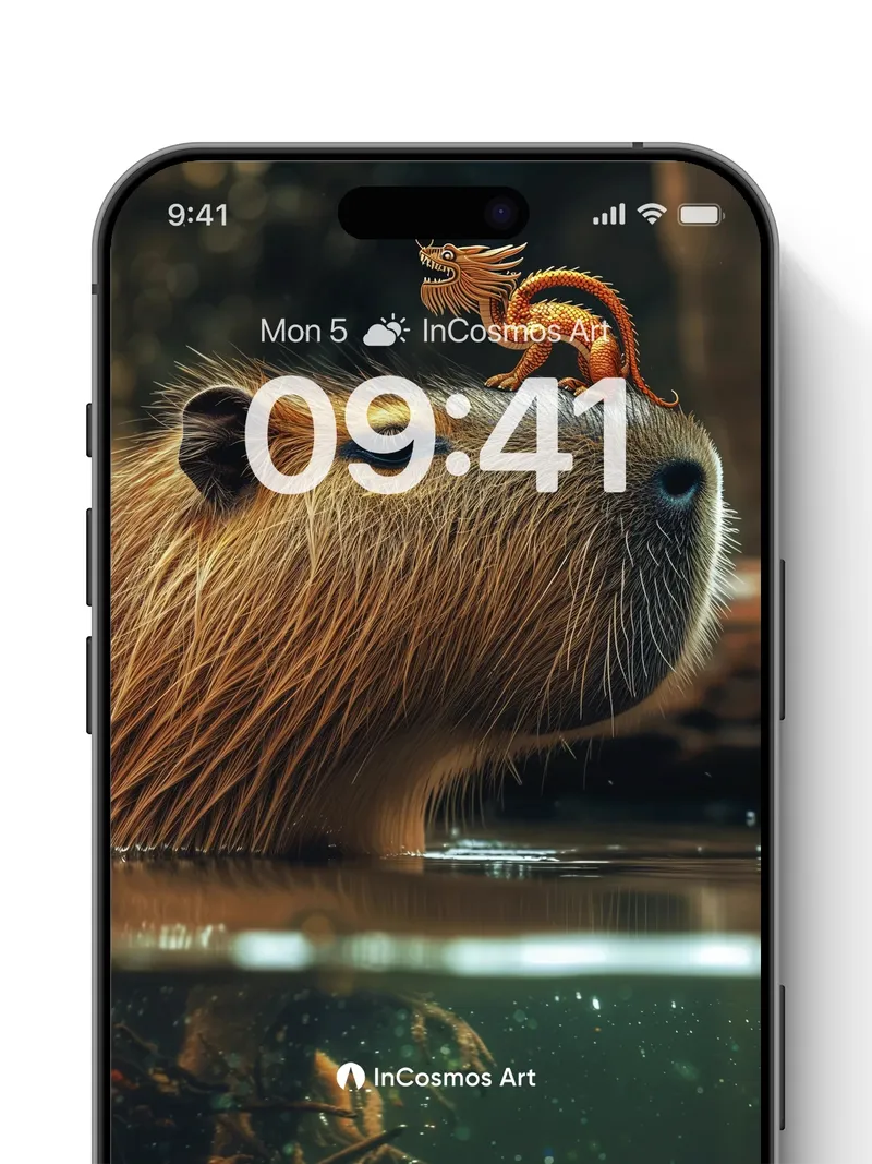 Debug product.metafields.custom.desc: Did you know capybaras are the largest rodents in the world, and their calm presence can soothe even the most turbulent waters? Here, a golden dragon perches atop a capybara’s head like a myth woven into reality, its scales shimmering as if lit by moonlight beneath the surface. The water breathes around them—clear, cool, alive—with roots curling like ancient veins below.