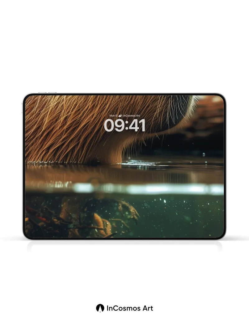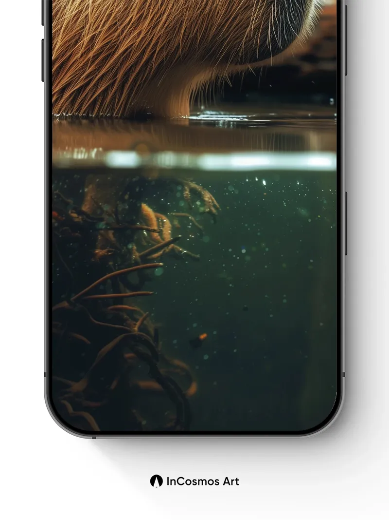 Did you know capybaras are the largest rodents in the world, and their calm presence can soothe even the most turbulent waters? Here, a golden dragon perches atop a capybara’s head like a myth woven into reality, its scales shimmering as if lit by moonlight beneath the surface. The water breathes around them—clear, cool, alive—with roots curling like ancient veins below.