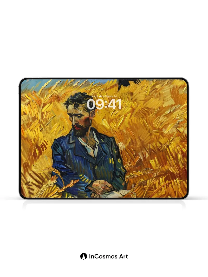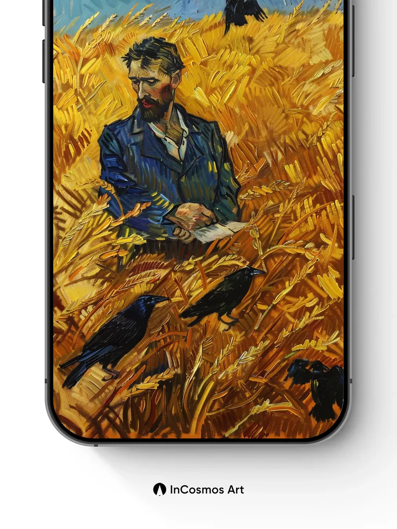 Debug product.metafields.custom.desc: Did you know Van Gogh painted wheatfields as a symbol of life’s fleeting nature? Here, golden stalks sway like whispered secrets beneath a sky where crows carve paths through swirling blue. A solitary man reads in the harvest, his hands still, eyes closed—caught between earth and sky, memory and motion. The brushstrokes pulse like breath, each stroke a heartbeat in the field.