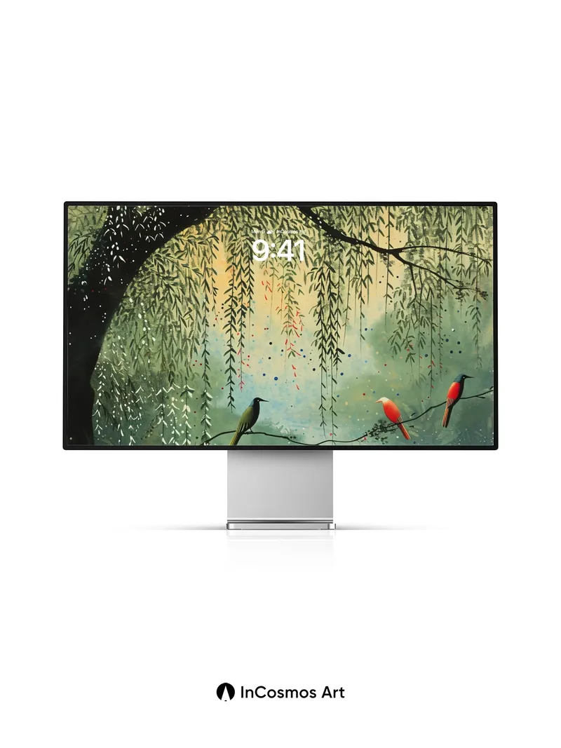 Debug product.metafields.custom.desc: Did you know willow branches once held sacred meaning in ancient rituals, believed to carry the whispers of forgotten spirits? Here, they drape like liquid emerald threads over a mist-laden lake, where birds of iridescent green and crimson rest as if suspended in time, their feathers catching the soft glow of a hidden sun. The air hums with quiet magic—each droplet of dew on the leaves refracts light into tiny rainbows, while the water below breathes beneath a veil of fog.