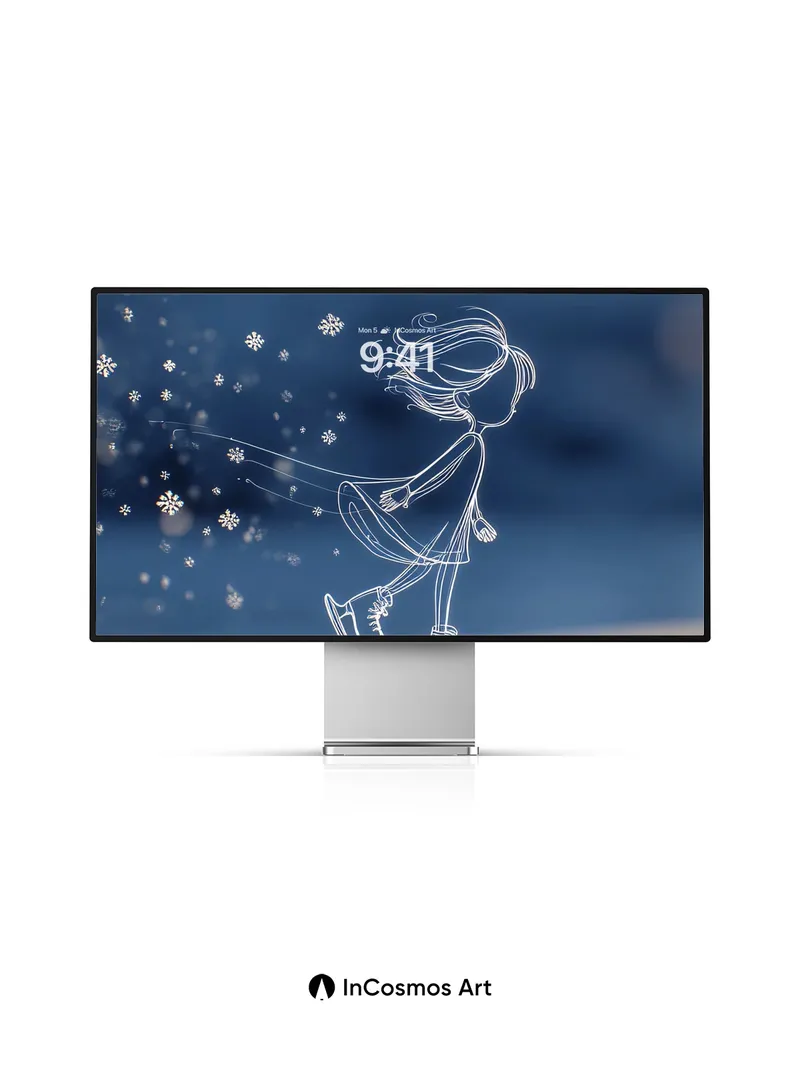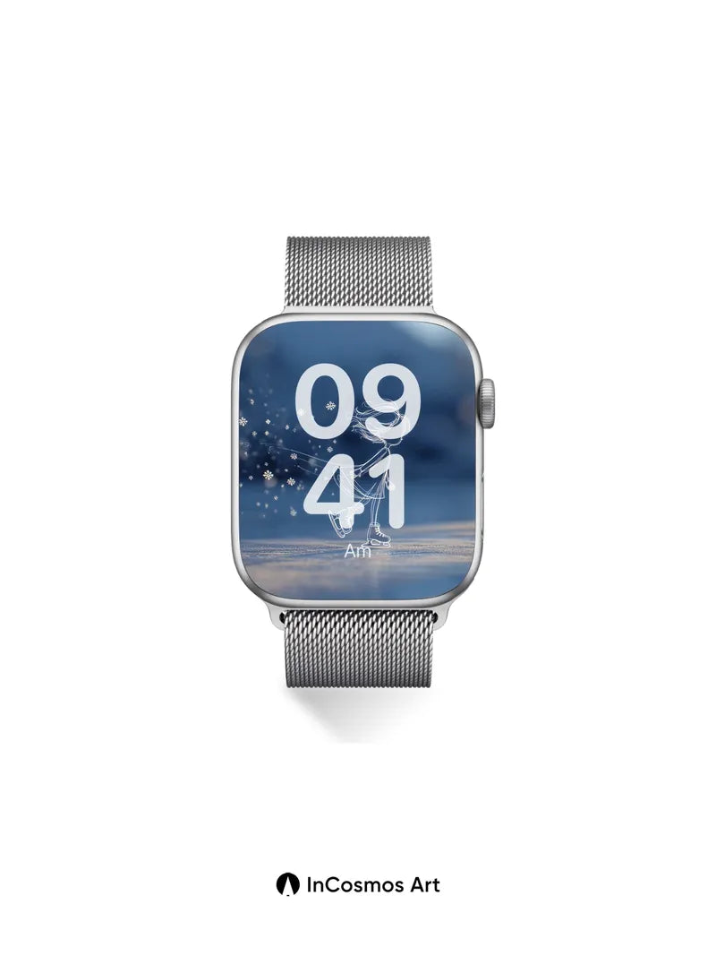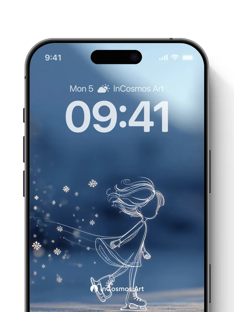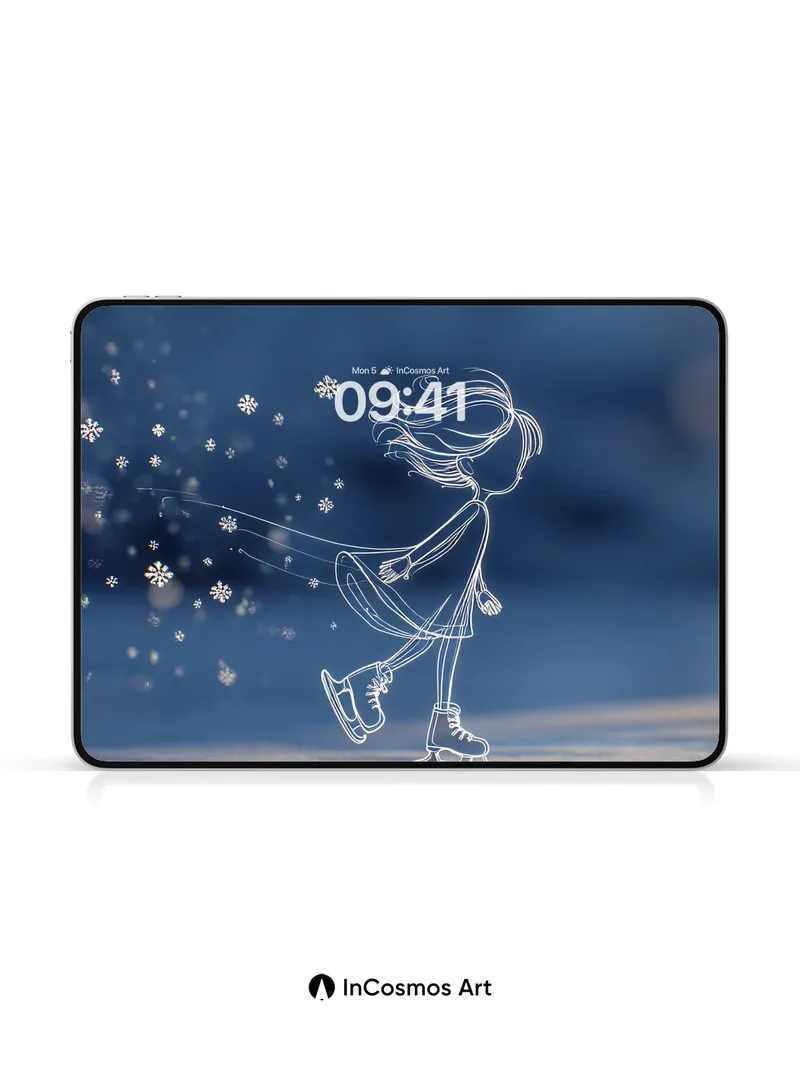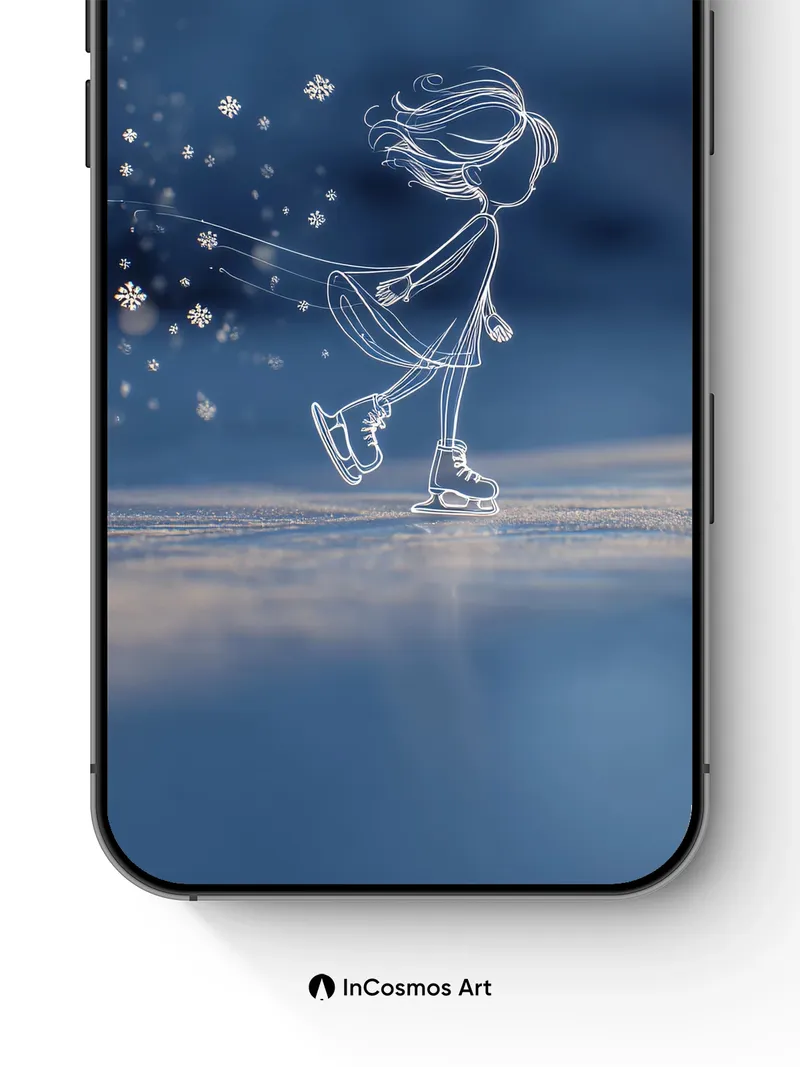 Debug page_description: Did you know ice skaters once used horsehair for their skate laces? Here, a glowing line-drawing girl glides across a frozen lake, her silhouette stitched from moonlight and motion, snowflakes drifting like scattered stardust behind her. The cold air hums with quiet magic as her dress flares in an invisible breeze, the surface beneath her feet shimmering with reflected twilight. Share this with your best friend. Send this to your love and swap a matching set. What if every memory could skate across time?