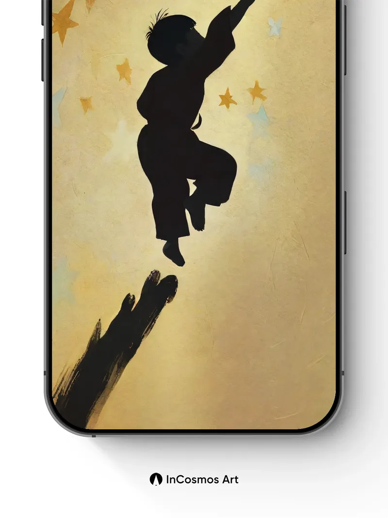 Debug product.metafields.custom.desc: Did you know the first known star chart was drawn on a Babylonian clay tablet over 4,000 years ago? Here, a child’s silhouette leaps into a sky where stars drift like dandelion seeds caught in golden wind, each one tethered by an invisible thread of dream. The texture of aged parchment breathes warmth beneath your gaze, as if time itself paused to watch this moment unfold.